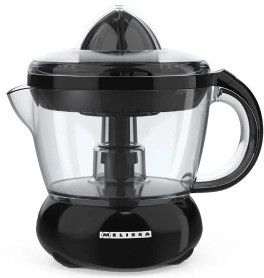 MELISSA Wyciskarka do cytrusów, 0,7 L, 40 W, dwa stożki, czarna, 16230042 Świeżo wyciśnięty sok to prosty sposób na porcję witamin każdego dnia. Wyciskarka do cytrusów MELISSA pozwala szybko i wygodnie przygotować sok z pomarańczy, grejpfrutów, cytryn czy limonek. Kompaktowa konstrukcja i pojemnik o pojemności 0,7 L sprawiają, że urządzenie doskonale sprawdzi się w codziennym użytkowaniu. Bezpieczeństwo i komfort Urządzenie wyposażono w antypoślizgową podstawę, która zapewnia stabilność podczas pracy. Prosta obsługa i niska moc 40 W gwarantują bezpieczne użytkowanie, a elementy przystosowane do mycia w zmywarce ułatwiają utrzymanie czystości po przygotowaniu soku. Praktyczność w każdym calu W zestawie znajdują się dwa stożki wyciskające, dzięki czemu wyciskarka nadaje się zarówno do mniejszych, jak i większych cytrusów. Niewielkie wymiary ułatwiają przechowywanie urządzenia, a klasyczna czarna kolorystyka dobrze komponuje się z innymi sprzętami kuchennymi.