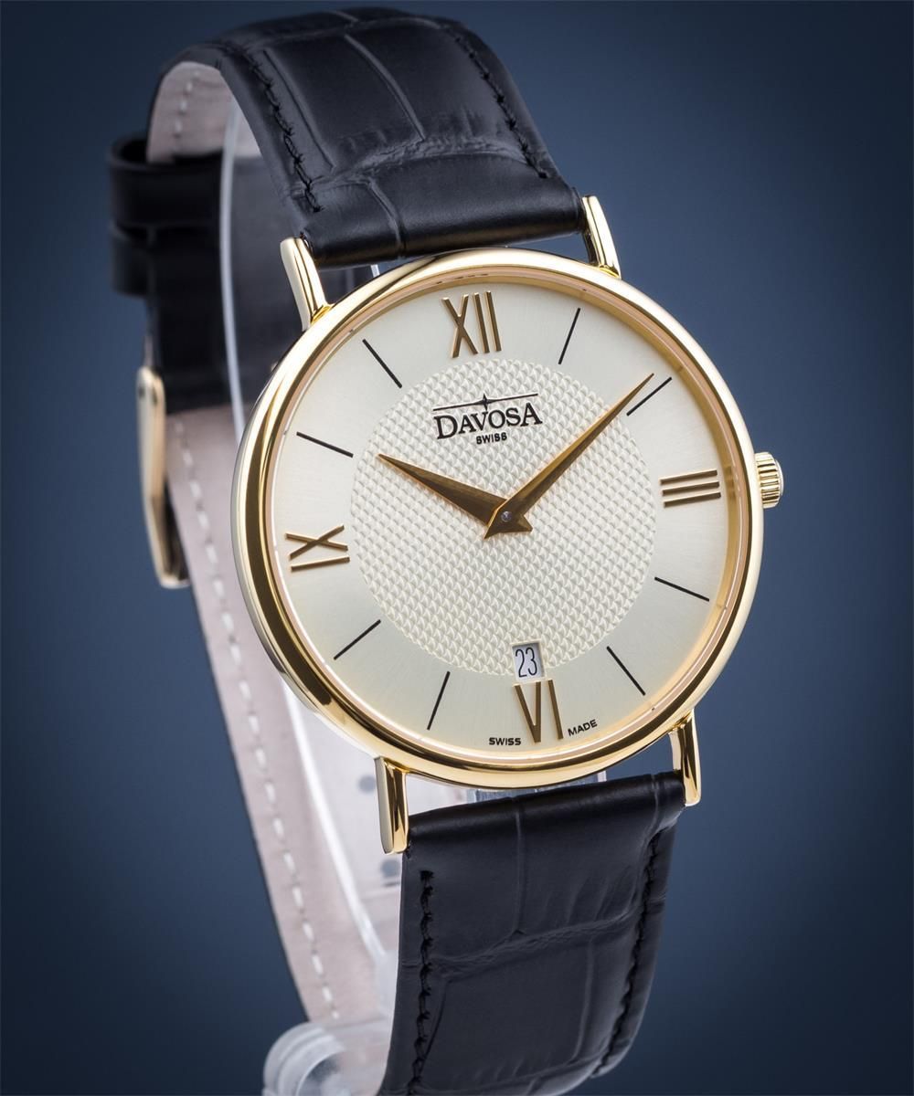 Zegarek DAVOSA Pianos II 162.486.35 Zegarek męski DAVOSA Pianos II 162.486.35 Mechanizm Typ - KWARCOWY Koperta Materiał - STAL NIERDZEWNA Kształt - OKRĄGŁY Kolor - ZŁOTY Wymiary - SZEROKOŚĆ 38mm / GRUBOŚĆ 6mm Wodoszczelność - 30M / 3ATM Szkło - SZAFIROWE - duża odporność na zarysowania. Tarcza Typ …