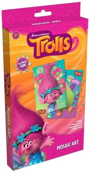 Mozaika wyklejana Trolle: - 2 karty z bohaterami filmu - 7 arkuszy z samoprzylepnymi piankowymi elementami mozaiki - 2 zawieszki Dla dzieci w wieku od 3 lat.