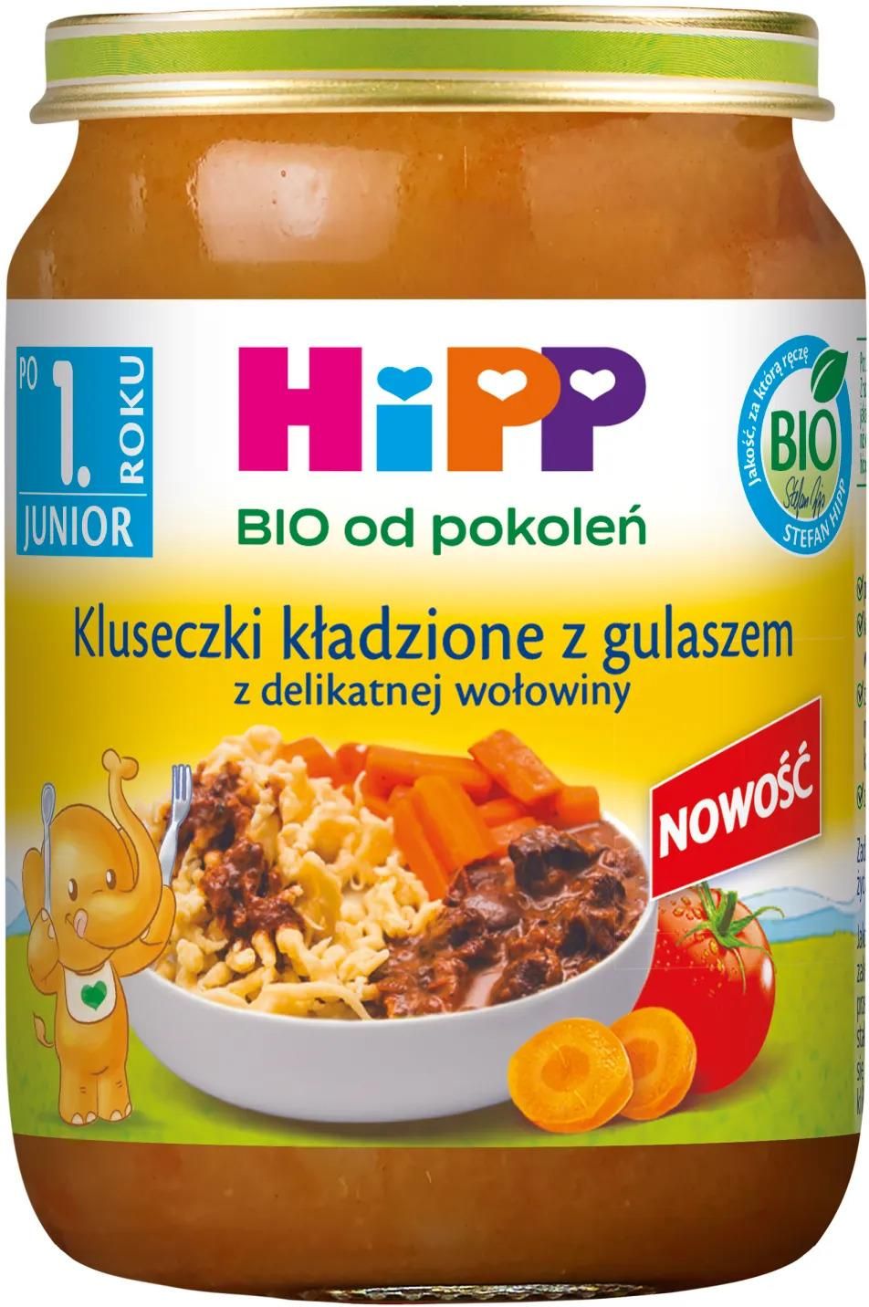 Hipp Junior Danie Bio Kluseczki Kładzione Z Gulaszem Delikatnej Wołowiny Po 1 Roku 250G Gostynin