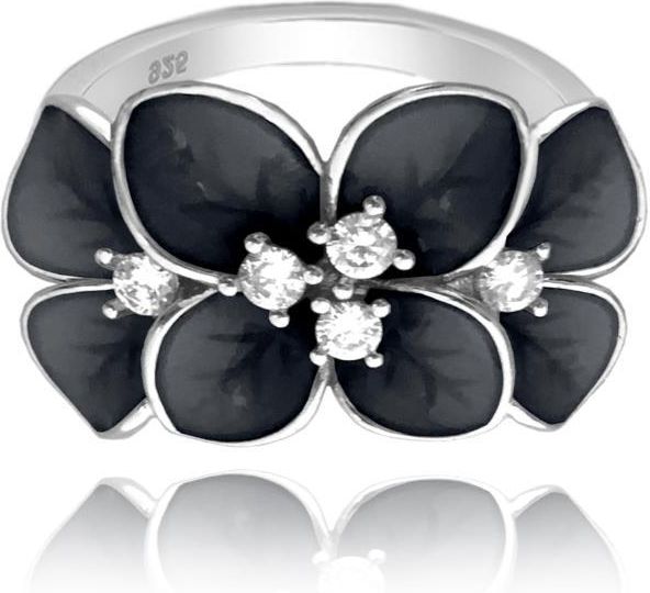 Minet Czarny kwiecisty pierścien srebrny FLOWERS z białymi cyrkoniami wielkość 17 Gostynin