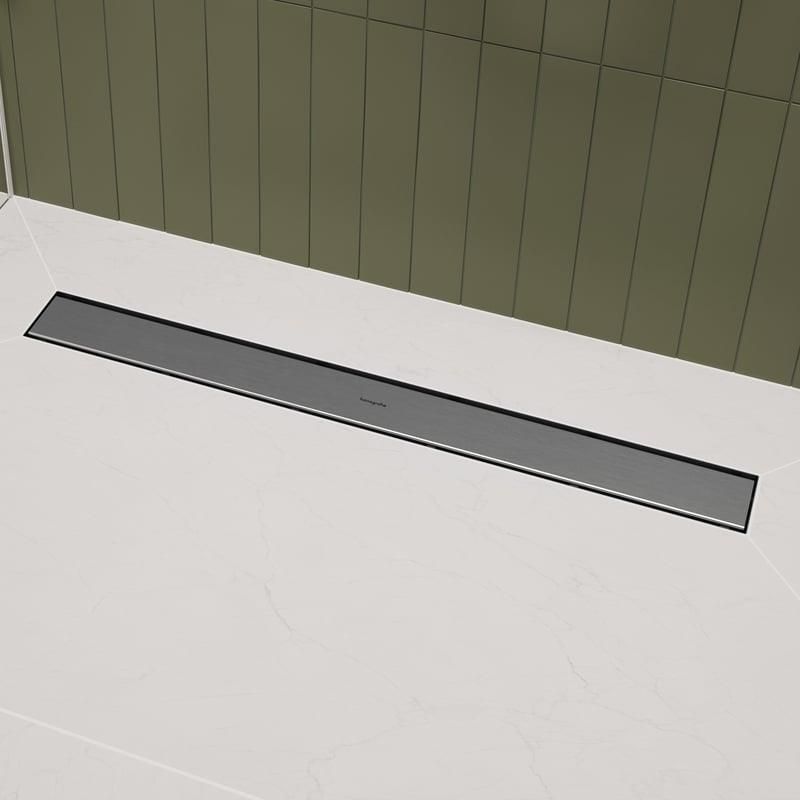 Hansgrohe RainDrain Go Kompletny odpływ liniowy 800, ruszt ozdobny/do wyłożenia płytkami, standardowy/niski składa się z: element zewnętrzny odpływu liniowego, Syfony, zestawy instalacyjny, wstępnie zamontowana membrana uszczelniająca, narzędzie do demontażu rusztu materiał rusztu: Stal szlachetna 304 (1.4301) materiał zestawu montażowego: Stal szlachetna 304 (1.4301) wysokość zamknięcia wodnego: 30 mm, 50 mm średnica przyłącza: DN40, DN50 położenie przyłącza odpływowego: poziomy powierzchnia łatwa w czyszczeniu obszar zastosowania: nowe budownictwo, renowacja obrotowy i regulowany korpus syfonu łatwy w czyszczeniu syfon narzędzie do demontażu rusztu umożliwia łatwy demontaż elementu zewnętrznego materiał syfonu: ABS typ montażu: montaż odsunięty od ściany możliwość wyłożenia płytkami od drugiej strony głębokość rusztu do wklejenia płytki: 12 mm możliwość wyboru pomiędzy dwoma syfonami, niskim lub standardowym nadaje się do odwodnienia pierwotnego i wtórnego RainDrain Go oferuje maksymalną swobodę dzięki możliwości instalacji w dowolnym miejscu podłogi w strefie prysznica, którą ten system odpływowy perfekcyjnie uszczelnia. Wysokość zestawu instalacyjnego można wyregulować, a w komplecie dostarczane są dwa syfony, do montażu płytkiego i standardowego. Dzięki temu RainDrain Go jest bezproblemowym rozwiązaniem odpływu w strefie prysznica walk-in w projektach mieszkaniowych i obiektowych. Ten odpływ liniowy cechuje duża wydajność odwodnienia wynosząca 39 l/min, łatwe czyszczenie i długowieczna jakość. Syfon i sitko na włosy można w razie potrzeby łatwo wyjąć i oczyścić. Do wyboru jest ozdobny ruszt w dwóch wariantach wykończenia, stal szlachetna szczotkowana i matowa czerń FinishPlus. Możesz również obłożyć drugą stronę płytkami dla efektu indywidualnej aranżacji. W ten sposób RainDrain Go wpisuje się w najróżniejsze, nowoczesne koncepcje projektowe.
