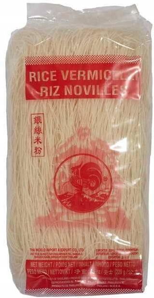 Makaron ryżowy z delikatnego i smacznego ryżu jaśminowego w formie wstążki o szerokości 1 mm. Tak jak inne produkty ryżowe, nie zawiera glutenu ani cholesterolu. Sposób użycia: Moczyć w gorącej wodzie przez 6 - 8 minut, odsączyć, a następnie dodać do zupy lub smażyć w ulubiony sposób. Składniki: …