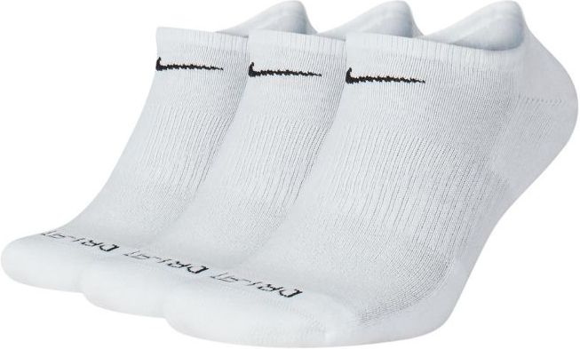 Skarpety Nike Everyday Plus Cushioned 3 pary białe SX6889 100 Skarpety Nike sprawdzą się w trakcie aktywności jak i poza nią. Model przeznaczony dla osób w różnym wiek. Oddychający, dzianinowy wzór w górnej części zwiększa wentylację. Wsparcie w technologii Dri-FIT. Niski krój. Ściągacze stabilizują skarpety na miejscu. Wzmocnione obszary pięty i palców wspierają amortyzację. Zestaw zawiera trzy pary skarpet. Materiał: 65-72% bawełna, 26-33% poliester, 2% spandex