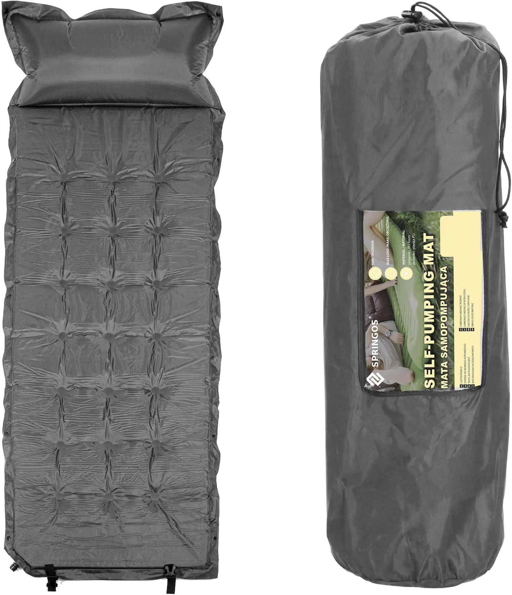 Springos Mata Samopompująca 193Cm Z Poduszką I Pokrowcem Turystyczna Jasna Szara Gozdnica