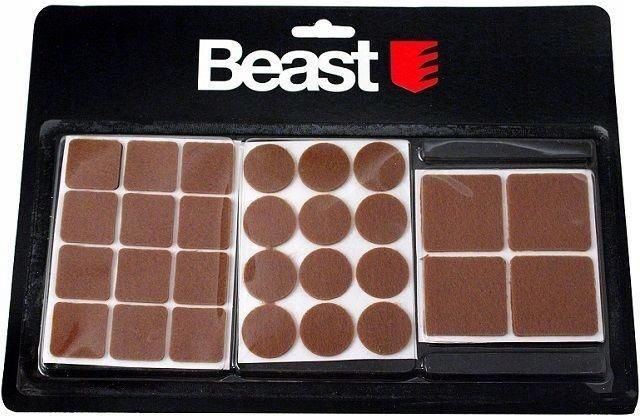 Podkładki filcowe pod meble samoprzylepne 28 sztuk brązowe kwadratowe okrągłe Zestaw samoprzylepnych podkładek filcowych pod meble, 28 sztuk, w kolorze brązowym, obejmuje zarówno kwadratowe, jak i okrągłe kształty, co zapewnia uniwersalność zastosowania. Podkładki skutecznie chronią podłogi przed zarysowaniami, a meble przed przesuwaniem, jednocześnie redukując hałas. Wykonane z wysokiej jakości filcu, są łatwe w montażu dzięki warstwie samoprzylepnej, co czyni je doskonałym rozwiązaniem do stosowania pod stołami, krzesłami, szafkami i innymi meblami. Idealne do różnego rodzaju powierzchni, takich jak drewno, płytki czy panele. Podkładki są stosunkowo sztywne, na mocnym kleju. Trzy różne rodzaje: kwadratowe o boku 2,5 cm - 12 sztuk; kwadratowe o boku 4 cm - 4 sztuki; okrągłe o średnicy 2,5 cm - 12 sztuk. W sumie zestaw zawiera 28 sztuk podkładek. Grubość podkładek ~ 3 mm. Kolor: brązowy