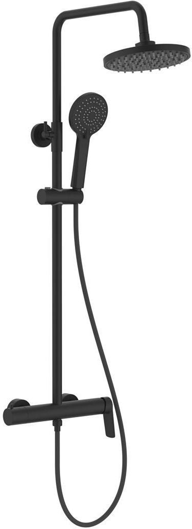kolumna natryskowa z baterią prysznicową głowica ceramiczna przełącznik słuchawka-deszczownica wysokość regulowana 750-1120 mm deszczownica o średnicy 200 mm słuchawka prysznicowa 3 funkcyjna wąż prysznicowy 170 cm kolor: czarny mat