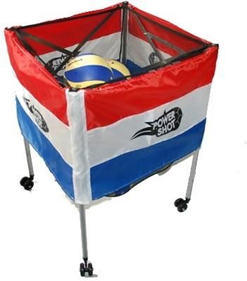 Składany wózek na piłki POWERSHOT® jest wyposażony w cztery podwójne skrętne kółka z plastiku, dzięki czemu idealnie sprawdza się podczas treningów np. siatkówki, piłki nożnej czy koszykówki. Doskonale pomieści około 20-30 piłek sportowych w zależności od ich wielkości. Jest wyjątkowo praktyczny, lekki i wygodny, o kompaktowych wymiarach i wadze. Konstrukcja wózka pozwala na łatwe i sprawne rozkładanie oraz składanie wedle potrzeby przez jedną osobę, a także przechowywanie i przenoszenie. Składa się ze aluminiowego stelaża podtrzymującego kosz i pozostałych poliesterowych materiałów gwarantujących trwałość i wytrzymałość przez długi czas. Ponadto wzmocnienia zapewniają unikalną funkcjonalność i solidność urządzenia. Wózek pozwala na swobodny transport piłek po placu gry. Dyktowany jest do użytkowania głównie w pomieszczeniach i salach. Występuje w jednej ciekawej wersji połączenia trzech kolorów: pomarańczowego, białego i niebieskiego.