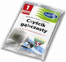 Czyścik gąbczasty to poliuretanowy zmywak otoczony warstwą myjącą z przędzy poliestrowej, przeznaczony do czyszczenia i zmywania delikatnych powierzchni. Idealnie nadaje się do zmywania i czyszczenia trudnych, podatnych na zarysowania powierzchni, np. porcelany, polerowanej stali nierdzewnej, tworzyw sztucznych, przedmiotów z miedzi, również naczyń stołowych. Świetnie sprawdzi się przy myciu blatów kuchennych, kabin prysznicowych oraz armatury łazienkowej. Dostępny w dwóch wariantach kolorystycznych: złotym i srebrnym. Jedna sztuka w opakowaniu. Ergonomiczny prostokątny kształt ułatwiający trzymanie.