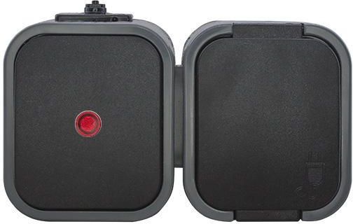 ABEX Gniazdo pojedyncze natynkowe 2P+Z bryzgoodporne + łącznik podświetlany IP44 szary czarny GWNB2 Grodków