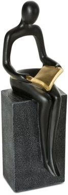 Figurka RICO wykonana z żywicy poliestrowej, przedstawiająca siedzącego mężczyznę trzymającego złotą książkę, to elegancki i artystyczny element dekoracyjny.