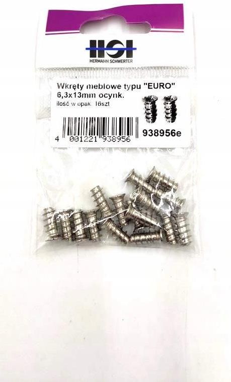 Wkręty do zawiasów typu "Euro" ocynkowan Wkręty do zawiasów typu "Euro" ocynkowane 6,3x13mm opak 16 Dostawca: HSI HERMANN SCHWERTERIlość w opakowaniu: 16szt.Wymiary: 6,3x13mm 4001221938956 012437