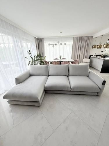 Sofa narożna CXL by Christian Lacroix Naima – Aksamit Light Grey (Lewa), 316 x 166 x 85 cmWprowadź do swojego wnętrza powiew luksusu i elegancji dzięki sofie narożnej Naima od renomowanej marki CXL by Christian Lacroix. To wyjątkowy mebel, który łączy nowoczesny design z niezwykłą wygodą i najwyższą jakością wykonania.✨ Cechy produktu:Kolor: Light Grey (jasny popiel) – subtelny, neutralny odcień doskonale komponujący się z każdą aranżacją wnętrza.Materiał obicia: Miękki, przyjemny w dotyku aksamit – elegancki, a zarazem praktyczny.Wymiary: szerokość 316 x głębokość 166 x wysokość 85 cm wysokość siedziska 40 cm, głębokość siedziska 80 cm – przestronna i komfortowa, idealna do wypoczynku z rodziną lub przyjaciółmi.Układ: Lewostronny – szezlong po lewej stronie, patrząc na sofę od frontu.Styl: Nowoczesny minimalizm z nutą designerskiego szyku – pasuje zarówno do wnętrz skandynawskich, glamour, jak i modern classic.✨ Dodatkowe informacje:Szerokie siedziska i miękkie poduchy gwarantują wysoki komfort użytkowania.Staranne wykończenie i detale nawiązujące do luksusowego stylu Christian Lacroix.Doskonała jakość materiałów zapewnia trwałość na lata.Ta sofa nie tylko wspaniale się prezentuje, ale też zaprasza do relaksu. Idealna do przestronnych salonów, gdzie stanie się centralnym punktem wypoczynku i spotkań.