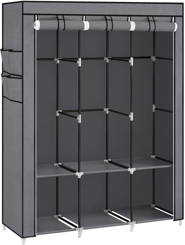 Opis produktu marki OSKAR: TEKSTYLNA SZAFA NA UBRANIA, SZARA Tekstylna, trzydrzwiowa szafa na ubrania wykonana z stalowych rurek, które stanowią jej stelaż oraz wysokiej jakości materiałów, łatwych do utrzymania w czystości. Poszycie szafki wykonane jest z oddychającego i wodoodpornego materiału …