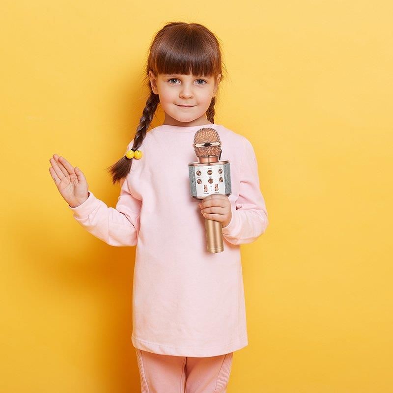 Mikrofon Bezprzewodowy Głośnik Bluetooth Mikrofon dla dzieci, który posłużył przez cały muzyczny wieczór. Został wyposażony w technologię bezprzewodową czyli w Bluetooth. Dobra jakość dźwięku wydobywanego z mikrofonu oraz redukcja szumów. Coraz częściej mikrofony posiadają dodatkowe funkcję takie jak np. funkcja niezależnego, przenośnego głośnika bluetooth, dzięki czemu produkt jest 2w1, czy efekt modulacji głosu. Warto wybrać mikrofon który posiada dodatkowe opcje takie jak m.in. remiks efektu echa, efekt niskiego głosu. Cechy charakterystyczne: cechuję się wysoką jakością dźwięku posiada wbudowaną funkcję redukcji szumów posiada wejście na zasilacz, wejście AUX, port USB oraz miejsce na kartę pamięci mikrofon nagrywa i pełni funkcję przenośnego głośnika bluetooth mikrofon połączy się z system Android oraz IOS posiada wbudowaną baterię litowo-polimerową wyposażony w wbudowany głośnik o mocy 5W co najlepsze, posiada efekt zmiany głosu obsługuje wyjście audio AUX oraz wkładanie karty TF i SD świetny nie tylko dla dzieci ale też dla dorosłych posiada wbudowane przyciski sterowania odtwarzaniem w zestawie z mikrofonem znajduję się Kabel MicroUSB do ładowania urządzenia Dostępne wzory: czarny złoty srebrny różowo złoty niebieski różowy Uwaga. Cena dotyczy 1 sztuki. W przypadku braku wyboru nastąpi wysyłka losowa.