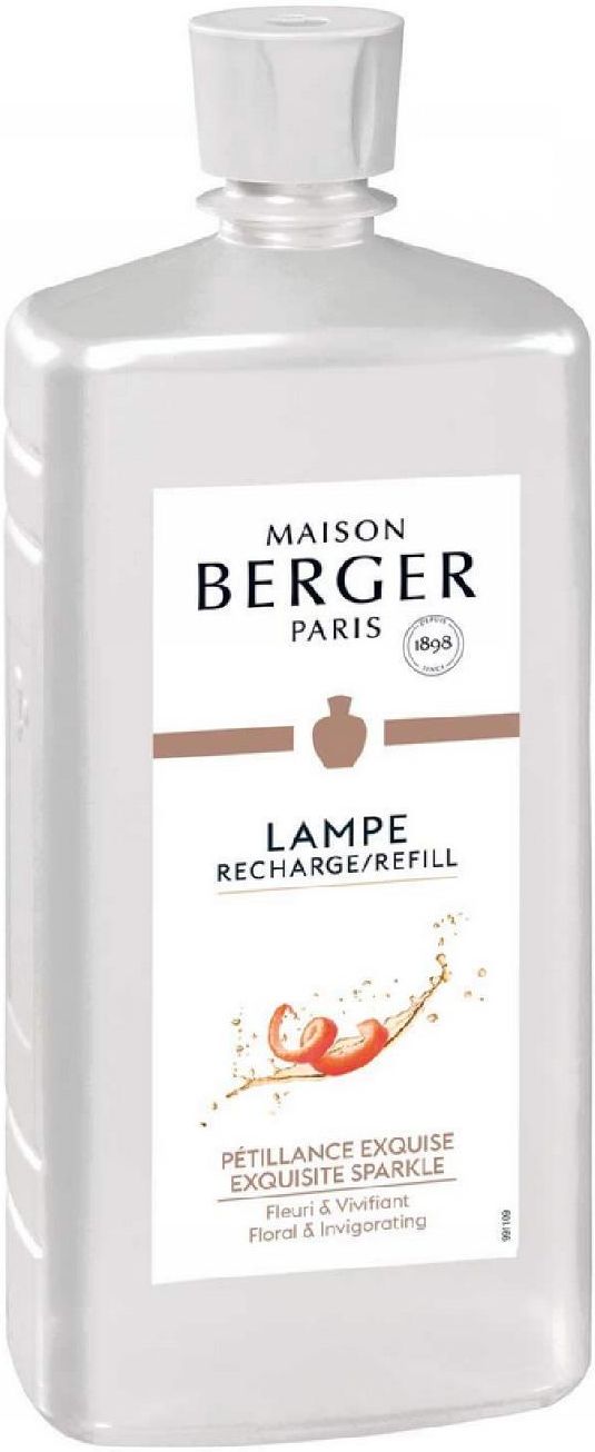 Olejek zapachowy "Szampan" 1l Maison Berger Paris Odkryj szeroką gamę zapachów do lamp marki Maison Berger Paris, których głównym zadaniem od ponad 100 lat jest eliminacja niepożądanych zapachów oraz dezynfekcja powietrza. Olejki zapachowe sprawią, że wnętrze Państwa domu zostanie po brzegi wypełnione pięknym zapachem. Zapach Szampan to połączenie grejpfruta z bukietem róż na bazie paczuli i piżma wzbogacone kroplą wykwintnego szampana. Olejek zapachowy o pojemności 1l wystarcza na około 160 godzin zapachu (olejek przeznaczony do specjalnych lamp zapachowych "Maison Berger Paris"). Szeroka gama olejków zapachowych pozwala każdemu użytkownikowi lampy na indywidualne dobranie nut zapachowych. Wśród olejków można wyróżnić zapachy orzeźwiające, kwiatowe, owocowe, słodkie, orientalne oraz neutralne. Maison Berger Paris zaprojektował również kolekcję Aroma, w której ekskluzywne kompozycje zapachowe olejków eterycznych mają pozytywny wpływ na emocje. Palnik należy wymieniać co 200 użyć lub raz do roku. Należy użyć neutralnego olejku zapachowego, aby zmniejszyć intensywność zapachu. Olejek neutralny pozwala oczyścić palnik, knot i lampę przed wprowadzeniem nowej nuty zapachowej. Olejek zapachowy o pojemności 1l wystarcza na około 160 godzin zapachu (olejek przeznaczony do specjalnych lamp zapachowych "Maison Berger Paris").