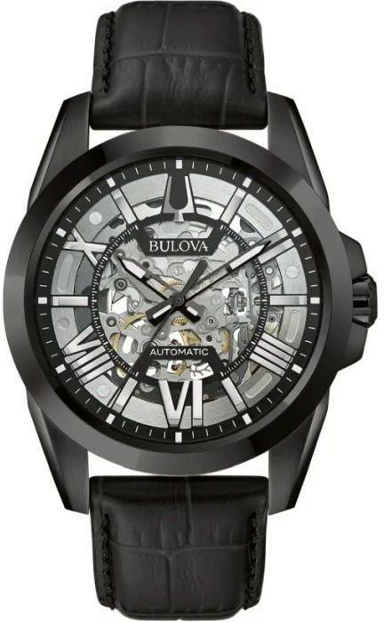 MĘSKI ZEGAREK BULOVA 98A304 CLASSIC SUTTON SKELETON AUTOMATIC NA PASKU Zegarki Bulova od wielu lat prezentują wysoką jakość wykonania oraz ekskluzywny design. Markę charakteryzuje kunsztowny wygląd i wysokiej klasy materiały. Luksusowy charakter marki odzwierciedla jego godne uwagi amerykańskie pochodzenie. Fabrycznie nowy, oryginalny zegarek Bulova 98A304 posiada przeszkloną tarczę i dekielek, co pozwala na obserwację pracy mechanizmu. Sercem czasomierza jest japoński, automatyczny mechanizm MIYOTA Cal. 8N24, z liczbą 21 kamieni. Specyfikacja zegarka Mechanizm: automatyczny MIYOTA -made in Japan, Cal. 8N24, 21 kamieni. Mechanizm czerpie energię z ruchu ręki. Możliwość ręcznego nakręcania. Zegarek nie wymaga wymiany baterii, dzięki pracy automatycznego naciągu. Koperta: wykonana z wysokiej jakości stali szlachetnej, stop ten charakteryzuje się najwyższym stopniem odporności na korozję. Szkiełko: wysokiej jakości szkiełko mineralne, odporne na zarysowania - płaskie. Pasek: wykonany ze skóry wysokiej jakości. Wodoszczelność: klasa wodoszczelności - 100M. Można pływać, ale nie wolno naciskać przycisków pod wodą. Neobrite: fosforyzowane wskazówki i indeksy świecące w ciemności. Kolorystyka koperta: czarna tarcza: srebrna, transparentna pasek: czarny wskazówki: czarno-białe Wysoka klasa wodoszczelności 100M, pozwala na swobodne pływanie w zegarku. Tarcze chroni szkiełko mineralne, które znane jest z odporności na zarysowania. Wskazówki zostały pokryte powłoką neobrite, więc po naświetleniu świecą przez jakiś czas w ciemności. Wymiary koperta: szerokość 45mm, wysokość 51mm tarcza: średnica 35mm szerokość paska: 22mm grubość zegarka: 12mm obwód zegarka od 17cm do 22cm W zamówieniu otrzymasz fabrycznie nowy i oryginalny zegarek oryginalne pudełko kartę gwarancyjną wraz z potwierdzeniem zamówienia książeczkę od producenta (jeżeli takową producent załączył)