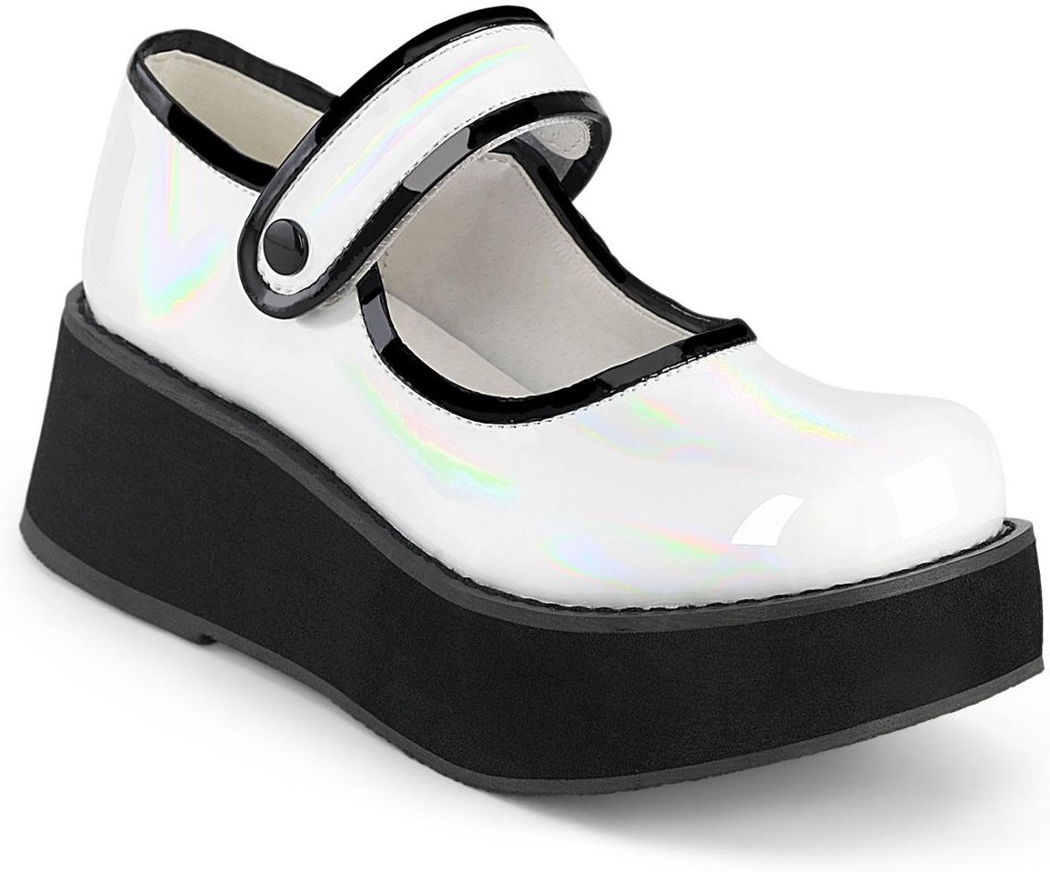 2 1/4 (57mm) Platform Hook N Loop Mary Jane w/ Contrast Piping & Button Detail