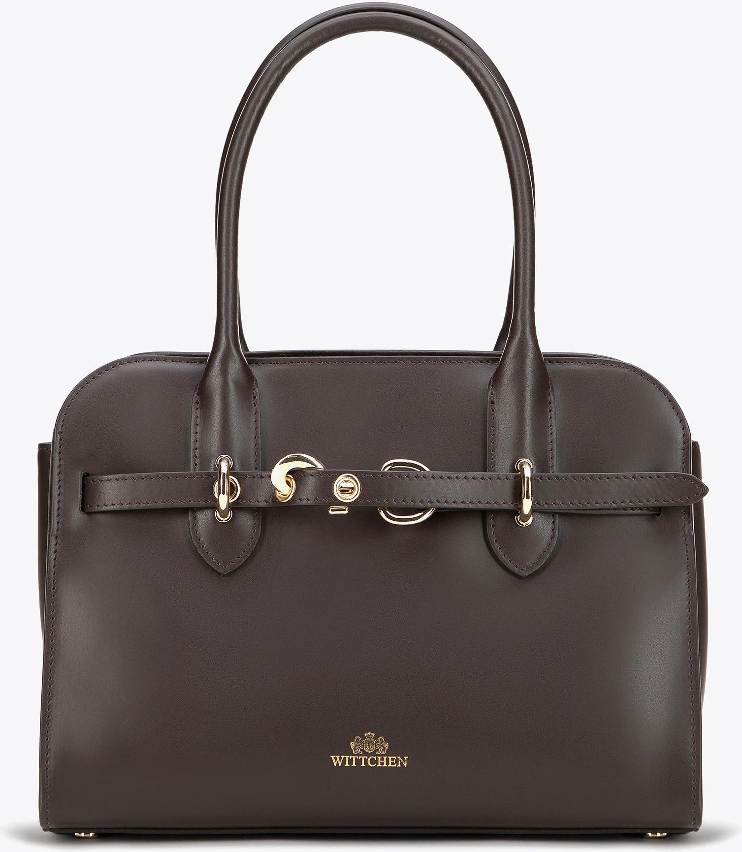 Damski kuferek z naturalnej skóry z dekoracyjnym paskiem ciemny brąz Grodzisk Mazowiecki