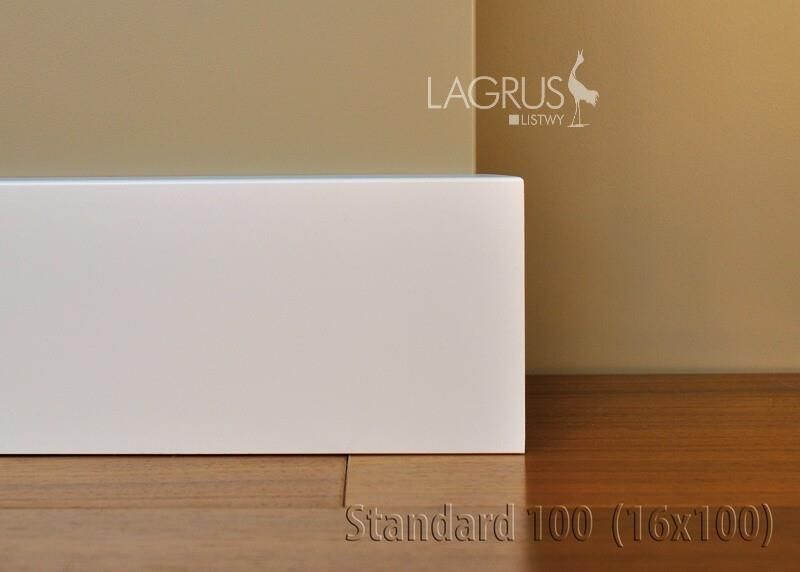 Listwy Lagrus Listwy Lagrus stanowią element dekoracyjno-wykończeniowy, który wykonany jest z wysokiej jakości MDF. Listwy Lagrus występują w białym kolorze (RAL 9003), dlatego wpasują się do każdej aranżacji. W listwach Lagrus jest możliwe przeprowadzenia okablowania dzięki specjalnym frezą, które ułatwiają także montaż listwy do ściany, dzięki czemu staje się ona odporna na uszkodzenia. Dzięki swojej wytrzymałości listwy Lagrus po długim czasie wyglądają tak samo estetycznie jak na początku. Listwy lagrus występują w wersji Standard oraz Plus. Wersja Plus to listwa wilgocioodporna, która jest szczególnie polecana do pomieszczeń o podwyższonej wilgotności powietrza. Są one lakierowane wielowarstwowo oraz zabezpieczone przeciwwilgociowo.W standardzie listwy Lagrus dostępne są w kolorze białym RAL 9016 , natomiast jest możliwość dopasowania do nich barwy z palet NCS, RAL i ICA.Listwy przypodłogowe Lagrus nie tylko pięknie się prezentują i nadają wnętrzu niepowtarzalny charakter, ale także są trwałe, raz założone będą zdobiły wnętrza przez lata. Lagrus Standard 100 Plus - listwa wilgocioodporna Lagrus standard 100 Plus to biała listwa przypodłogowa wilgocioodporna, która łączy ścianę z podłogą. Prosty wzór listwy, sprawia, że staje się ona uniwersalnym dodatkiem do wystroju wnętrza. Lagrus Standard 100 Plus to wspaniały dodatek, o eleganckim designu, który dzięki wilgocioodpornemu materiałowi o wysokiej jakości może być montowany w nawet łazience.Listwa Lagrus Standard 100 Plus dostępna jest w kolorze białym, jednak istnieje możliwość wyboru innego koloru z palet ICA, RAL, NCS. Dane techniczne:Grubość: 16 mmWysokość : 100 mmDługość listwy: 2,62 mKolor : RAL 9016