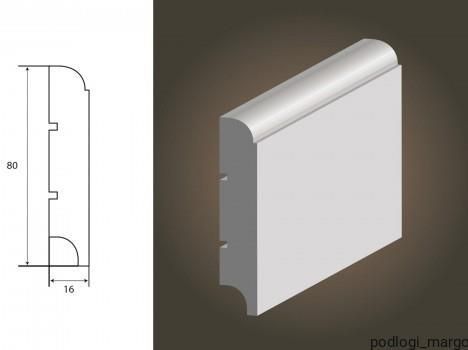 Przed złożeniem zamówienia, prosimy o kontakt celem ustalenia dostępności listew, z powodu ograniczeń produkcyjnych. Listwy wykonane z MDF tj. płyty drewnopochodnej o średniej gęstości. Powierzchnia pokryta lakierem poliuretanowym, dolna krawędź zaizolowana przeciwwilgociowo.Listwy posiadają podfrezowanie na kable oraz frezy poprawiające mocowanie do ściany.Kolor: biały (RAL 9003)Długość listwy: 2,62mbWysokość i grubość: 16x80mmSposób montażu: klej montażowy. Listwy są wysyłane tylko pod dokonaniu przedpłaty na konto, przy odbiorze osobistym w sklepie oczywiście możliwa płatność gotówką na miejscu. Istnieje możliwość zamówienia tego profilu w wersji MDF WILGOCIOODPORNY, profil dostępny na innej aukcji. W przypadku zamawiania podłogi i listew prosimy o kontakt w celu uzgodnienia kosztów transportu.