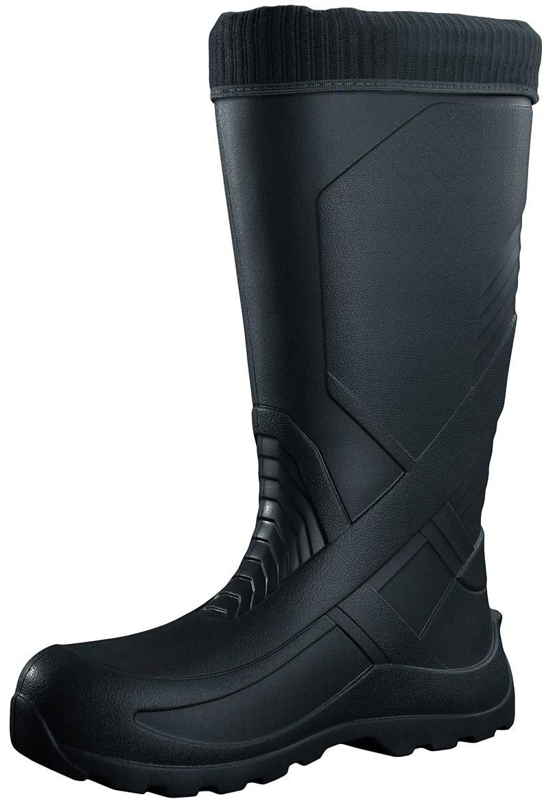 Nowoczesne, całoroczne i uniwersalne kalosze marki Dry Walker. Wykonane zostały z wytrzymałego tworzywa EVA (z ang. ethylene-vinyl acetate), które zapewnia odpowiednią lekkość oraz całkowitą wodoszczelność. Konstrukcja kaloszy została oparta o najnowsze technologie, dzięki czemu doskonale sprawdzą się w wielu aktywnościach. Z powodzeniem mogą być wykorzystywane podczas wędkowania w rzece, prac w ogrodzie, na gospodarstwie rolnym oraz przy pracach wykonywanych na budowie. Kalosze posiadają certyfikat B-BŻ-6071-0091-18-C który dopuszcza je do stosowania w zakładach przemysłu spożywczego. Buty wyposażone zostały w antypoślizgową, filcową wkładkę, która dostosowuje się do stylu chodzenia oraz utrzymuje odpowiednią temperaturę wewnątrz, zapewniając wyjątkowy komfort podczas użytkowania. Zastosowane, grube ścianki obuwia mają decydujący wpływ na właściwości ochronne. Na pięcie umieszczona została specjalna mata, absorbująca wibrację. Dane techniczne Kolor: czarny Materiał: tworzywo EVA Wkładka: filcowa Wysokość kalosza: 39 cm Grubość kalosza przy palcach: 17,5 mm Grubość kalosza przy pięcie: 13 mm Waga: 950 g Producent: Dry Walker
