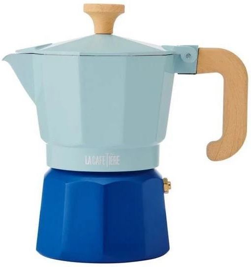 Kawiarka włoska Venice 3 Cup - Sky Blue La Cafetie Klasyczna włoska moka Venice w niebanalnym dwukolorowym wydaniu. Aluminiowa, tradycyjna kawiarka w dwóch odcieniach niebieskiego, do parzenia aromatycznej kawy, idealna na 3 filiżanek espresso. Dlaczego warto mieć w domu stylową włoską kawiarkę? …
