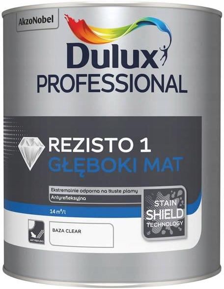 Dulux Professional Rezisto 1 2,18 L Antyrefleksyjna i plamoodporna farba do ścian Farba wewnętrzna o rewolucyjnych właściwościach odporności na plamy Dzięki specjalnej technologii Stain Shield Technology farba tworzy powłoki ekstremalnie odporne na tłuste plamy, szorowanie i mycie detergentami. …