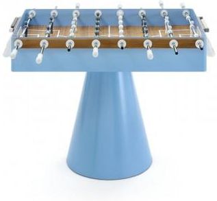 CICLOPE CAPRI, specjalna edycja stołu piłkarskiego CICLOPE, inspirowana jest włoskim samochodem „SPIAGGINA” z lat 50. o jasnoniebieskiej strukturze, jasnych drewnianych wstawkach i wiklinowej fakturze wydrukowanej na stole do gry. Trubute FAS Pendezza do Neapolu i jego miłość do stołów do piłki nożnej i morza. CICLOPE to stół piłkarski zaprojektowany przez Basaglia + Rota Nodari dla FAS Pendezza. CICLOPE jest wyjątkowy w swoim rodzaju: rezygnuje ze zwykłej koncepcji „stołu z 4 nogami”, przyjmując zamiast tego ściętą podstawę stożka. To świetna innowacja, która nadaje produktowi stabilność i elegancję. Drążki teleskopowe dla zwiększenia bezpieczeństwa.Materiały są odporne na czynniki zewnętrzne, dzięki czemu są odpowiednie do wnętrza i na zewnątrz.