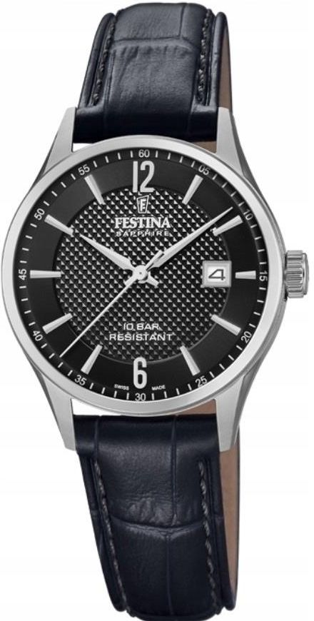 Festina F20009/4 Zegarek Festina F20009/4 to doskonałe połączenie elegancji i funkcjonalności, które sprawia, że jest idealnym dodatkiem do każdej stylizacji. Dzięki swojemu klasycznemu designowi, ten model może być noszony zarówno na co dzień, jak i podczas wyjątkowych okazji. Warto zwrócić uwagę na jego kluczowe cechy, które wyróżniają go na tle innych zegarków. Typ zegarka Omawiany produkt należy do kategorii zegarków analogowych, które łączą w sobie tradycyjne rzemiosło z nowoczesnym stylem. Zegarki analogowe charakteryzują się wskazówkami, które poruszają się po tarczy, co nadaje im klasyczny urok. Przyciągają wzrok eleganckim designem i często oferują różne dodatkowe funkcje, co czyni je praktycznym wyborem na co dzień. Mechanizm W sercu tego wyjątkowego zegarka znajduje się kwarcowy mechanizm, który zapewnia niezawodność i precyzję w odmierzaniu czasu. Kwarcowe mechanizmy są znane z wysokiej dokładności oraz minimalnej potrzeby konserwacji, co sprawia, że są idealnym rozwiązaniem dla osób ceniących sobie wygodę. Jakość mechanizmu podnosi prestiż tego modelu, a użytkownicy mogą cieszyć się jego niezawodnym działaniem przez długie lata. Materiał koperty Koperta omawianego zegarka została wykonana z wysokiej jakości stali szlachetnej, co gwarantuje nie tylko trwałość, ale również elegancki wygląd. Stal nierdzewna jest materiałem odpornym na korozję oraz uszkodzenia, co czyni ją idealnym wyborem na długotrwałe użytkowanie. Okrągły kształt koperty o średnicy 29 mm sprawia, że zegarek doskonale układa się na nadgarstku, będąc jednocześnie subtelnym i wyrazistym akcentem. Szkło Ochrona tarczy w tym modelu zapewnia szafirowe szkło, które jest uważane za jeden z najlepszych materiałów dostępnych na rynku zegarmistrzowskim. Szkło szafirowe charakteryzuje się wyjątkową odpornością na zarysowania, co sprawia, że zegarek zawsze będzie wyglądał jak nowy, nawet przy codziennym użytkowaniu. Dodatkowo, jego przejrzystość zapewnia doskonałą widoczność tarczy, co jest istotne w codziennym korzystaniu z zegarka. Pasek lub bransoleta Zegarek wyposażony jest w skórzany pasek w kolorze czarnym. Skóra naturalna to materiał, który nie tylko pięknie się prezentuje, ale także zapewnia komfort noszenia. Pasek ma długość 105 mm w części z dziurkami oraz 75 mm w części ze sprzączką, co pozwala na łatwe dopasowanie do nadgarstka. Klasyczny design paska doskonale współgra z elegancką kopertą, tworząc harmonijną całość. Wodoszczelność Model ten wyróżnia się wodoszczelnością na poziomie 100 m, co oznacza, że może towarzyszyć użytkownikowi podczas różnorodnych aktywności, w tym sportów wodnych, takich jak pływanie czy nurkowanie bez akwalungu. Taka funkcjonalność czyni ten zegarek doskonałym wyborem dla osób prowadzących aktywny tryb życia, które nie chcą rezygnować z elegancji. Wymiary Wymiary zegarka są niezwykle istotne dla osób poszukujących idealnego modelu. Grubość koperty wynosi zaledwie 9 mm, co sprawia, że jest lekki i wygodny w noszeniu. Szerokość koperty wynosi 29 mm, a szerokość mocowania to 14 mm, co zapewnia odpowiednie dopasowanie do nadgarstka i nadaje zegarkowi subtelny wygląd. Kluczowe cechy produktu Warto zwrócić uwagę na najważniejsze cechy tego zegarka: Wodoszczelność: 100 m, idealna do uprawiania sportów wodnych, Materiał koperty: stal nierdzewna, zapewniająca trwałość i elegancję, Długość paska: 105 mm w części z dziurkami, 75 mm w części ze sprzączką, Mechanizm: kwarcowy, gwarantujący dokładność oraz niezawodność, Szkło: szafirowe, odporne na zarysowania, Styl: klasyczny, pasujący do wielu okazji, Kolory: czarne detale na tarczy i pasku, srebrna koperta. Zegarek Festina F20009/4 łączy w sobie elegancję oraz funkcjonalność, co sprawia, że jest interesującym wyborem dla osób ceniących sobie zarówno styl, jak i praktyczność. Dzięki wysokiej jakości materiałom i precyzyjnemu mechanizmowi, model ten z pewnością stanie się niezastąpionym dodatkiem w codziennym życiu.