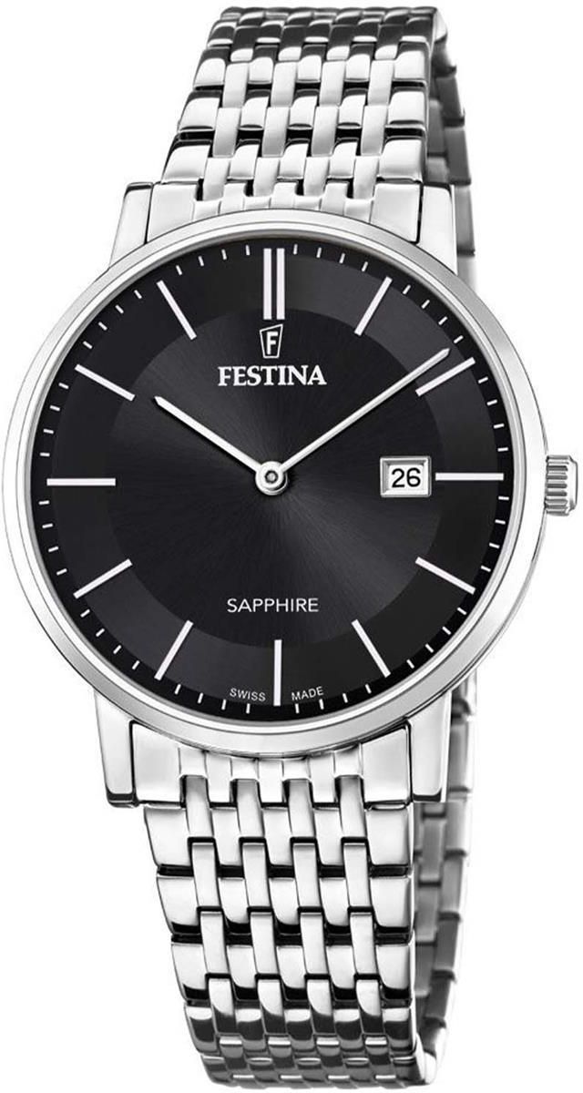 Festina F20018-3 Zegarki od zawsze odgrywają kluczową rolę w życiu codziennym. Festina F20018-3 to doskonały przykład eleganckiego i funkcjonalnego czasomierza, który doda klasy każdemu mężczyźnie. Ten model łączy w sobie nowoczesne rozwiązania z klasycznym stylem, co czyni go idealnym akcesorium na każdą okazję. Przyjrzyjmy się kluczowym cechom tego zegarka. Typ zegarka To analogowy zegarek męski, co oznacza, że czas wyświetlany jest za pomocą tradycyjnych wskazówek. Tego rodzaju czasomierze łączą w sobie elegancję oraz prostotę obsługi. Mechanizm kwarcowy, zastosowany w tym zegarku, gwarantuje wysoką precyzję i niezawodność, dzięki czemu zyskujesz pewność, że zawsze będziesz na czas. Mechanizm W sercu tego czasomierza znajduje się kwarcowy mechanizm M704, znany ze swojej dokładności i trwałości. W przeciwieństwie do mechanizmów automatycznych czy mechanicznych, kwarcowe charakteryzują się prostotą i niską potrzebą konserwacji. Dodatkowo, zegarki z mechanizmem Swiss Made, takie jak ten model, cieszą się uznaniem na całym świecie dzięki wysokim standardom jakości i precyzji. Wybierając ten czasomierz, zyskujesz produkt, który odzwierciedla rzemiosło szwajcarskie w najlepszym wydaniu. Materiał koperty Koperta zegarka została wykonana ze stali nierdzewnej, co zapewnia nie tylko estetyczny wygląd, ale również trwałość. Stal nierdzewna 316L, z której zbudowano ten model, jest odporna na korozję oraz codzienne uszkodzenia, co czyni ją idealnym materiałem na zegarki. Srebrny kolor koperty dodaje mu elegancji, a okrągły kształt sprawia, że zegarek jest ponadczasowy i pasuje do wielu stylizacji. Szkiełko Czasomierz został wyposażony w szafirowe szkiełko, które jest jednym z najlepszych wyborów na rynku. Charakteryzuje się wysoką odpornością na zarysowania, co jest niezbędne w codziennym użytkowaniu. Dzięki swojej przejrzystości, zapewnia doskonałą widoczność tarczy, co dodatkowo podnosi komfort korzystania z tego modelu. Wybierając zegarek z szafirowym szkłem, zyskujesz pewność, że Twój czasomierz będzie prezentował się nienagannie przez długi czas. Pasek lub bransoleta Bransoleta ze stali nierdzewnej w kolorze srebrnym dopełnia elegancki wygląd tego modelu. Dzięki swojej solidności, bransoleta nie tylko dobrze się prezentuje, ale również zapewnia komfort noszenia. Długość paska z dziurkami wynosząca 120 mm oraz część ze sprzączką o długości 85 mm pozwala na łatwe dopasowanie do nadgarstka, co jest kluczowe dla wygody użytkowania. Styl i design Stylowy, klasyczny design tego zegarka przyciąga wzrok i dodaje pewności siebie. Czasomierz z czarną tarczą z logo producenta oraz srebrnymi wskazówkami wyróżnia się prostotą i elegancją. Jego minimalistyczny wygląd sprawia, że idealnie sprawdzi się zarówno w formalnych, jak i casualowych stylizacjach. Ten model stanowi doskonałe połączenie nowoczesności z tradycją, co czyni go uniwersalnym akcesorium na każdą okazję. Wodoszczelność Zegarek zapewnia wodoszczelność na poziomie 50 metrów (5 ATM). Oznacza to, że z powodzeniem można go nosić podczas mycia rąk, a także w trakcie pływania w basenie. Ta cecha sprawia, że jest to odpowiedni wybór dla aktywnych mężczyzn, którzy chcą mieć pewność, że ich czasomierz przetrwa w różnych warunkach. Wymiary Zegarek prezentuje się zgrabnie dzięki swoim wymiarom: średnica koperty wynosi 40 mm, a jej wysokość to 9 mm. Szerokość paska wynosząca 20 mm sprawia, że zegarek leży komfortowo na nadgarstku, nie krępując ruchów. Te detale mają duże znaczenie dla użytkowników, którzy pragną, aby ich akcesoria nie tylko wyglądały dobrze, ale również były wygodne w noszeniu. Cechy dodatkowe Poniżej przedstawiamy kluczowe cechy produktu, które warto znać: brak cech dodatkowych, długość paska część z dziurkami: 120 mm, długość paska część ze sprzączką: 85 mm, wodoszczelność: 50 m, kolor: czarny, kolor koperty: srebrny, kolor paska: srebrny.