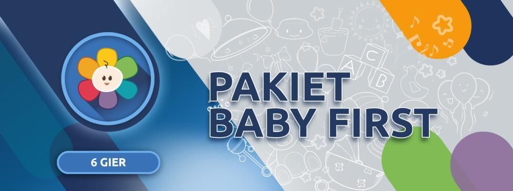 Pakiet Baby First został stworzony we współpracy z amerykańską telewizją Baby First TV. Gry kierowane są głównie do najmłodszych odbiorców. Pakiet Baby First TV zawiera 6 gier, które wprowadzają najmłodszych w świat dźwięków i kolorów. Gry są świetną formą zabawy ruchowej rozwijającej spostrzegawczość i koordynację wzrokowo ruchową. Szczególnie polecany do przedszkoli, żłobków i sal zabaw. 1. PEEK A BOO - A KUKU ( 1-3 os. / 30 sek. / łatwy) Peek a Boo bardzo lubi bawić się w chowanego. Przyjrzyj się dobrze a na pewno go wypatrzysz. Wtedy powiedz „a kuku widzę Cię” i wskocz na niego, ale gdzie się podział Peek a Boo? Poszukamy go razem? 2. TĘCZOWY KOŃ - KOLORY ( 1-4 os. / bez limitu / łatwy) Tęczowy Koń uwielbia malować obrazki swym kolorowym ogonem. Pomóż mu i pomaluj dokładnie wszystkie elementy. Jak Ci się uda pomalować wszystkie elementy, Tęczowy Koń namaluje dla Ciebie piękną kolorową tęczę. 3. MISIA BENIA - DŹWIĘKI (1-3 os. / bez limitu / łatwy) Cześć Misiu Beniu! Pobawimy się w odgadywanie dźwięków? Posłuchaj uważnie i odgadnij co to za dźwięk. Wybierz obrazek, który według Ciebie pasuje do dźwięku. Gotowi? Dobrze, więc bawmy się. 4. SAMMY & EVE - CIEPŁO, ZIMNO (1-10 os. / bez limitu / łatwy) Wiewiórka Sammy ma żołądź, hmm…gdzie by go schować. Już wiem! Ukryję go tutaj. Twoim zadaniem jest pomóc wiewiórce Eve go odnaleźć. Dziecko, które będzie szukać zakrywa oczy, a pozostałe dzieci pomagają w szukaniu mówiąc ciepło-zimno. Kiedy odnajdziemy żołądź klaszczemy w dłonie. Zagramy razem? 5. KACZUSZKA TILLY - ZWIERZĘTA ( 1-10 os. / bez limitu / łatwy) Cześć jestem kaczuszka Tilly, to jest mój dom. Odwiedzają mnie tu moi przyjaciele. Bardzo lubię się z nimi bawić. Hmm…a co to za dźwięk? Ktoś przyszedł mnie odwiedzić, bardzo ciekawe kto to też może być. Pomożecie mi odgadnąć jakie zwierzątko czeka za drzwiami? Posłuchajmy razem. 6. GOO GOO - SAMOCHODY ( 1-4 os. / bez limitu / łatwy) Mały niebieski GooGoo bardzo lubi rysować samochody. Czasami jego rysunki wyskakują z kartki i uciekają na wszystkie strony. Pomożesz je złapać zanim odjadą?