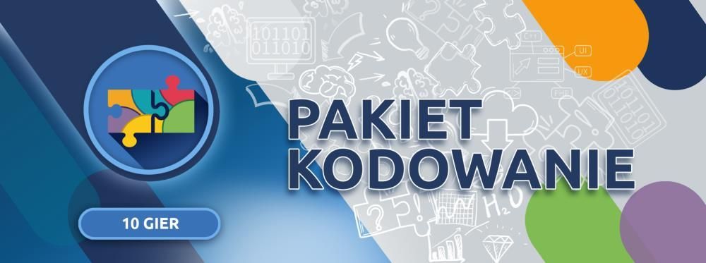 Pakiet Kodowanie stanowi wstęp do nauki programowania. Dostępny jest w 3 wersjach (przedszkole, klasy I-III, klasy IV-VIII), które zostały dostosowane poziomem trudności. Każdy z pakietów składa się z 10 gier, które rozwijają analityczne myślenie, zdolności matematyczne oraz wspomagają pamięć i koncentrację uwagi dzieci. Opis gier: 1. PROSTO DO CELU (1-3 os. / do 5 min. / średni) Na ekranie rozmieszczone są kwadratowe pola oraz punkt startowy. Cel gry to przejście po planszy tak, aby zaznaczyć całą ścieżkę i dotrzeć do ukrytego skarbu. Pomogą w tym widoczne na ekranie poszczególne polecenia, które należy prawidłowo wykonać. 2. MATEMATYCZNE ŚCIEŻKI ( 1-3 os. / do 5 min. / trudny) Na ekranie wyświetlone są trzy ścieżki zbudowane z pól, na których znajdują się liczby. Cel gry to dodanie wszystkich liczb z całej ścieżki oraz wybranie tej, która ma największy wynik. 3. SZYBKA GRA ( 2 os. / 3 min. / trudny) Gra dla dwóch osób. Plansza podzielona jest na dwie części niebieską i zieloną. Na ekranie wyświetla się pytanie i dwie możliwe odpowiedzi. Za każdą właściwą odpowiedź przyznawany jest punkt. 4. SYMBOLICZNE KLOCKI ( 1-3 os. / do 5 min. / średni) Na ekranie znajdują się kolorowe klocki. Na górze planszy wyświetla się sekwencja symboli. Celem gry jest zaznaczenie we właściwej kolejności klocków, które przyporządkowane zostały do konkretnych symboli. 5. POŁĄCZ KROPKI ( 1 os. / do 5 min. / średni) Na planszy rozmieszczone są punkty. Każdy z nich ma przypisany poszczególny symbol. W górnej części ekranu znajduje się legenda z symbolami, które mają przyporządkowaną liczbę. Celem gry jest połączenie punktów w kolejności od najmniejszego do największego. 6. PAMIĘĆ MISTRZA ( 1 os. / do 5 min. / średni) Na ekranie wyświetlona jest plansza z różnymi symbolami. Celem gry jest zapamiętanie i odtworzenie kolejności podświetlanych symboli. 9. LABIRYNT SMAKOŁYKÓW ( 1 os. / 2 min. / trudny) Na planszy wyświetlony jest labirynt, w którym ukryte są smakołyki. Cel gry to pomoc misiowi w zebraniu słodyczy zanim zapadnie noc. Kieruj misiem za pomocą strzałek, żeby mógł znaleźć jak najkrótszą drogę. 10. LICZBOWE PLATFORMY (2 os. / 2 min. / trudny) Gra dla dwóch osób. Na środku ekranu wyświetlona jest liczba. Celem gry jest złapanie tylu liczb, żeby ich suma była równa liczbie widocznej na środku.