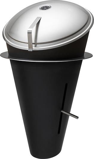 Montowany grill węglowy Cone w kolorze czarnym i srebrnym o średnicy 60 cm oraz wysokości 90 cm. Grill został wykonany ze stali nierdzewnej.