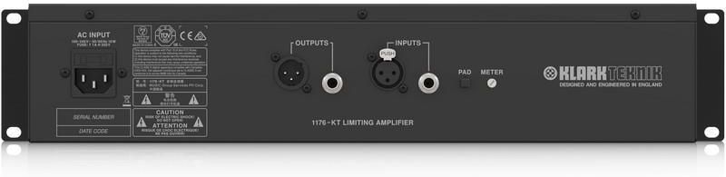 Klark Teknik 1176-KT – klasyczny kompresor typu FET ze wzmacniaczem w klasie A oraz transformatorami Midas. Kompresor typu FET oparty na rewizjach D i E klasycznej konstrukcji 1176LN W całości dyskretna ścieżka sygnałowa Wzmacniacz wyjściowy skonstruowany w klasie A Specjalnie zaprojektowane transformatory wejściowe i wyjściowe Midas Przyciski do wyboru współczynnika kompresji 4:1, 8:1, 12:1, 20:1 Bardzo szybki czas ataku od 20 do 800 mikrosekund Czas wybrzmiewania od 80 do 700 milisekund Wskaźnik typu „vintage przedstawiający redukcję wzmocnienia oraz poziom wyjściowy Transformatorowo symetryzowane wejścia i wyjścia zrealizowane na złączach XLR Neutrik Wytrzymała obudowa 2U z możliwością montażu w racku, doskonale sprawdzająca się w aplikacjach przenośnych Wbudowany uniwersalny zasilacz impulsowy Zaprojektowany i opracowany w Wielkiej Brytanii