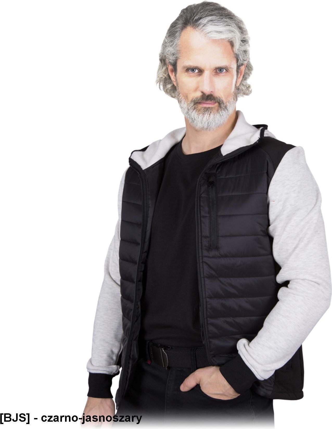 LH-TWISTER. Kurtka ochronna, męska. powłoka 100% nylon o gramaturze 35 g/m2. Wyściółka 100% poliester o gramaturze 200 g/m2. Podszewka 100% poliester typu tafta 210T o gramaturze 60 g/m2. Czarne wstawki z tkaniny SOFTSHELL 100% poliester o gramaturze 130 g/m2. Jasnoszare wstawki 62% bawełna, 38% poliester o gramaturze 290 g/m2. Zapinana na suwak. Dwie kieszenie w dolnej części bluzy zapinane na suwak. Dodatkowa zasuwana kieszeń na klatce piersiowej. Kaptur wykończony elastyczną lamówką. Rękawy zakończone ściągaczem. Własności kaptur stały, - dwukolorowy kaptur, - kieszenie w dolnej części. - kieszeń na klatce piersiowej. Produkt polecany dla branż: - logistyka w tym transport i przeładunek (prace magazynowe), - prace budowlane i remontowe, - prace montażowo-instalacyjne, - budowa dróg. Marka: LEBER&HOLLMAN. Kolor: czarno-jasnoszary. Rozmiary: S-3XL.