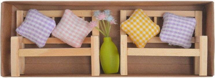 Ławeczka drewniana komplet 2 sztuki z poduszkami + wazon w pudełku