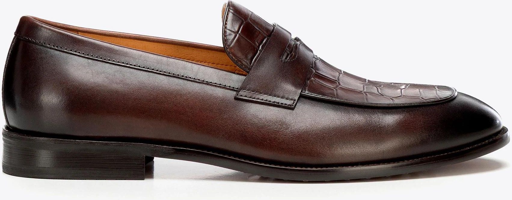 Męskie mokasyny ze skóry naturalnej o fakturze croco brązowe Grodzisk Mazowiecki