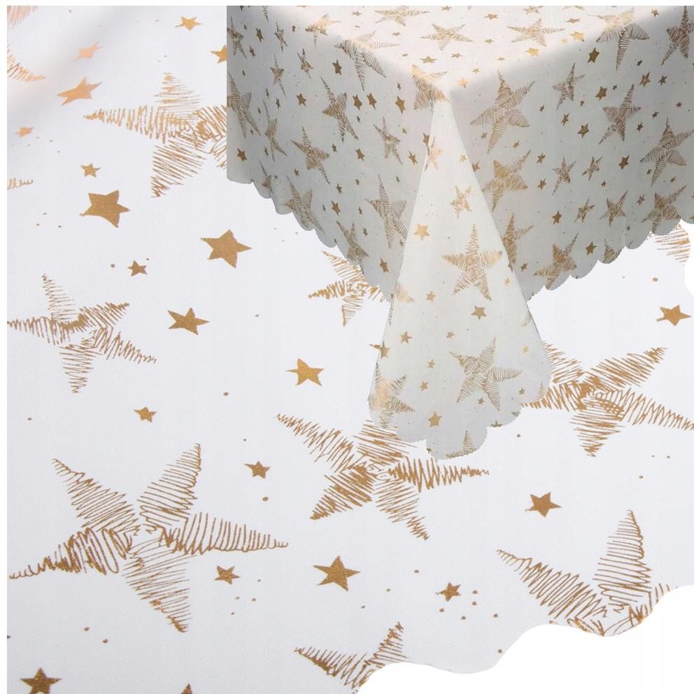 OBRUS ŚWIĄTECZNY NA STÓŁ BOŻE NARODZENIE BIAŁY GWIAZDKI ŚNIEŻYNKI 140x220cm Grodzisk Mazowiecki