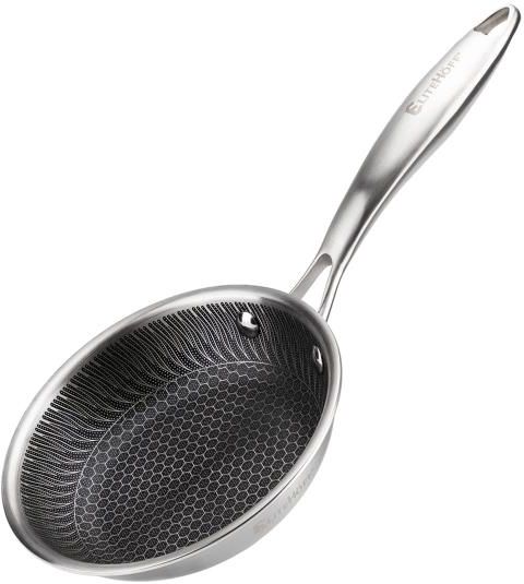 Patelnie stalowe z powłoką typu plaster miodu – profesjonalna trwałość i wygoda Patelnia stalowa z powłoką typu plaster miodu to nowoczesne naczynie kuchenne stworzone z myślą o intensywnym użytkowaniu. Wykonana z wysokiej jakości stali nierdzewnej, wyróżnia się wyjątkową odpornością na uszkodzenia mechaniczne oraz działanie wysokiej temperatury. Jej powierzchnia pokryta jest specjalną strukturą przypominającą plaster miodu, która pełni funkcję ochronną dla powłoki nieprzywierającej. Dzięki temu rozwiązaniu patelnia jest bardziej trwała, odporna na zarysowania i bezpieczna w kontakcie z metalowymi akcesoriami kuchennymi. Powłoka umożliwia zdrowsze smażenie przy minimalnej ilości tłuszczu, a jednocześnie zapobiega przywieraniu potraw. Zalety patelni stalowej z powłoką plaster miodu solidna konstrukcja ze stali nierdzewnej, innowacyjna powierzchnia o strukturze plastra miodu, odporność na zarysowania i uszkodzenia, możliwość smażenia z minimalną ilością tłuszczu, równomierne nagrzewanie i utrzymywanie ciepła, kompatybilność z wszystkimi rodzajami kuchenek, także indukcyjnymi, łatwe czyszczenie i higieniczne użytkowanie. Rozmiar: Ø16 x 4 cm Patelnia z powłoką typu plaster miodu to doskonały wybór zarówno dla profesjonalnych kuchni, jak i do codziennego użytku domowego. Łączy w sobie nowoczesny design, funkcjonalność oraz wytrzymałość, zapewniając komfort smażenia przez długie lata.