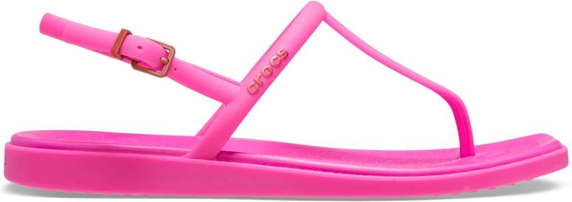 Sandały damskie Crocs Miami Thong Flip pink crush to wyjątkowy produkt, który łączy w sobie nowoczesne technologie i materiały, aby zapewnić komfort i trwałość. Te sandały wyróżniają się przede wszystkim zastosowaniem specjalistycznego materiału oraz innowacyjnych technologii, które są charakterystyczne dla marki Crocs. Materiał cholewki Materiał cholewki w modelu Crocs Miami Thong Flip został wykonany z termoplastycznego poliuretanu (TPU). Jest to materiał znany z wysokiej odporności na uszkodzenia mechaniczne, co sprawia, że sandały są wyjątkowo trwałe i odporne na zużycie. TPU charakteryzuje się elastycznością i lekkością, co dodatkowo zwiększa komfort noszenia nawet podczas długotrwałego użytkowania. Innowacyjne technologie W sandałach Crocs Miami Thong Flip zastosowano zaawansowane technologie, takie jak Croslite™ i Iconic Crocs Comfort™. Technologia Croslite™ to opatentowany materiał, który zapewnia wyjątkową amortyzację i lekkość. Dzięki niemu każdy krok jest miękki i sprężysty, co redukuje zmęczenie stóp. Iconic Crocs Comfort™ to kolejna innowacja, która zapewnia niezrównany komfort, umożliwiając długotrwałe użytkowanie sandałów bez uczucia dyskomfortu. Podeszwa zewnętrzna Podeszwa zewnętrzna sandałów została wykonana z tworzywa sztucznego, co zapewnia doskonałą przyczepność i stabilność na różnych powierzchniach. Materiał ten jest również odporny na ścieranie, co dodatkowo przedłuża żywotność obuwia. Dzięki solidnej konstrukcji, sandały są idealne zarówno do codziennego użytkowania, jak i na wakacyjne wyjazdy. Marka Crocs Sandały Crocs Miami Thong Flip są częścią oferty renomowanej marki Crocs, która jest znana na całym świecie z produkcji wygodnego i funkcjonalnego obuwia. Marka ta kładzie duży nacisk na innowacje technologiczne oraz wysoką jakość materiałów, co sprawia, że produkty Crocs cieszą się dużym uznaniem wśród użytkowników poszukujących komfortu i niezawodności.