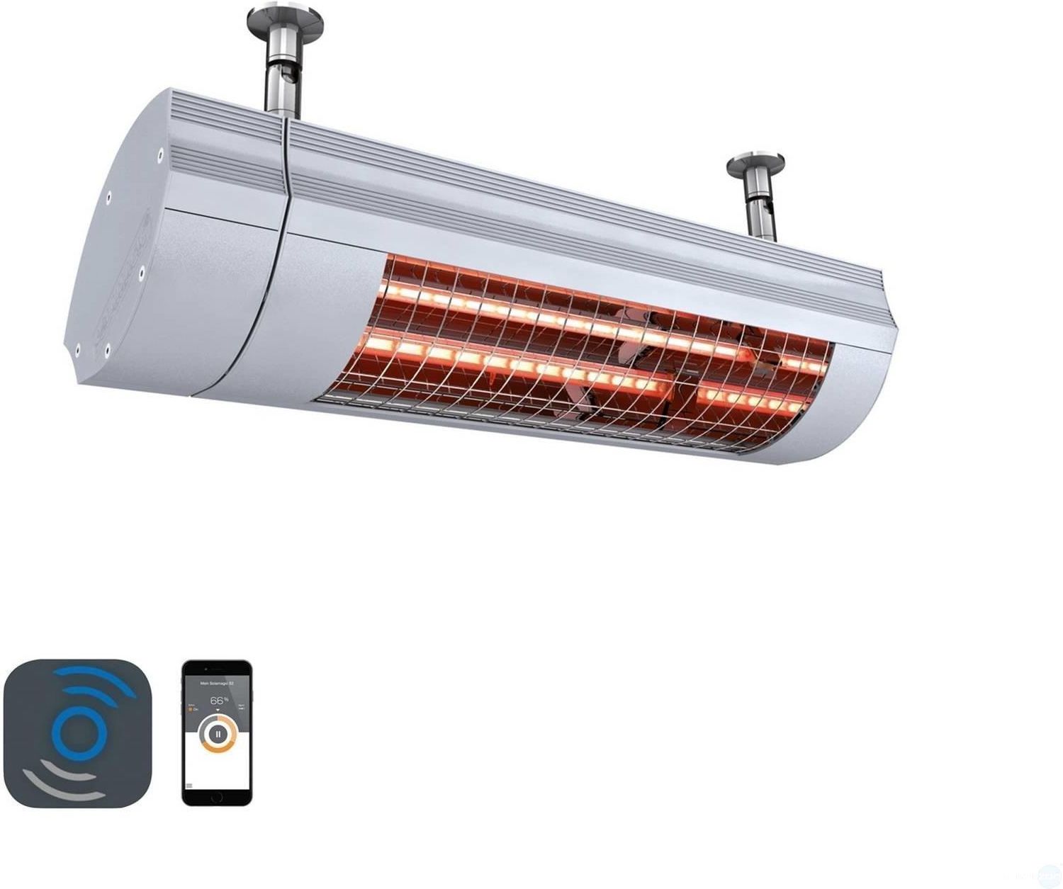 Designerski promiennik podczerwieni o mocy 1400W/2000W do ogrzewania tarasu, patio, balkonu itp. wodoodporny (IP44). Montaż na ścianie lub na suficie. Kolory: antracyt, biały, tytanowy. Made in Germany. Do ogrzewania ok. 12m2 na zewnątrz.