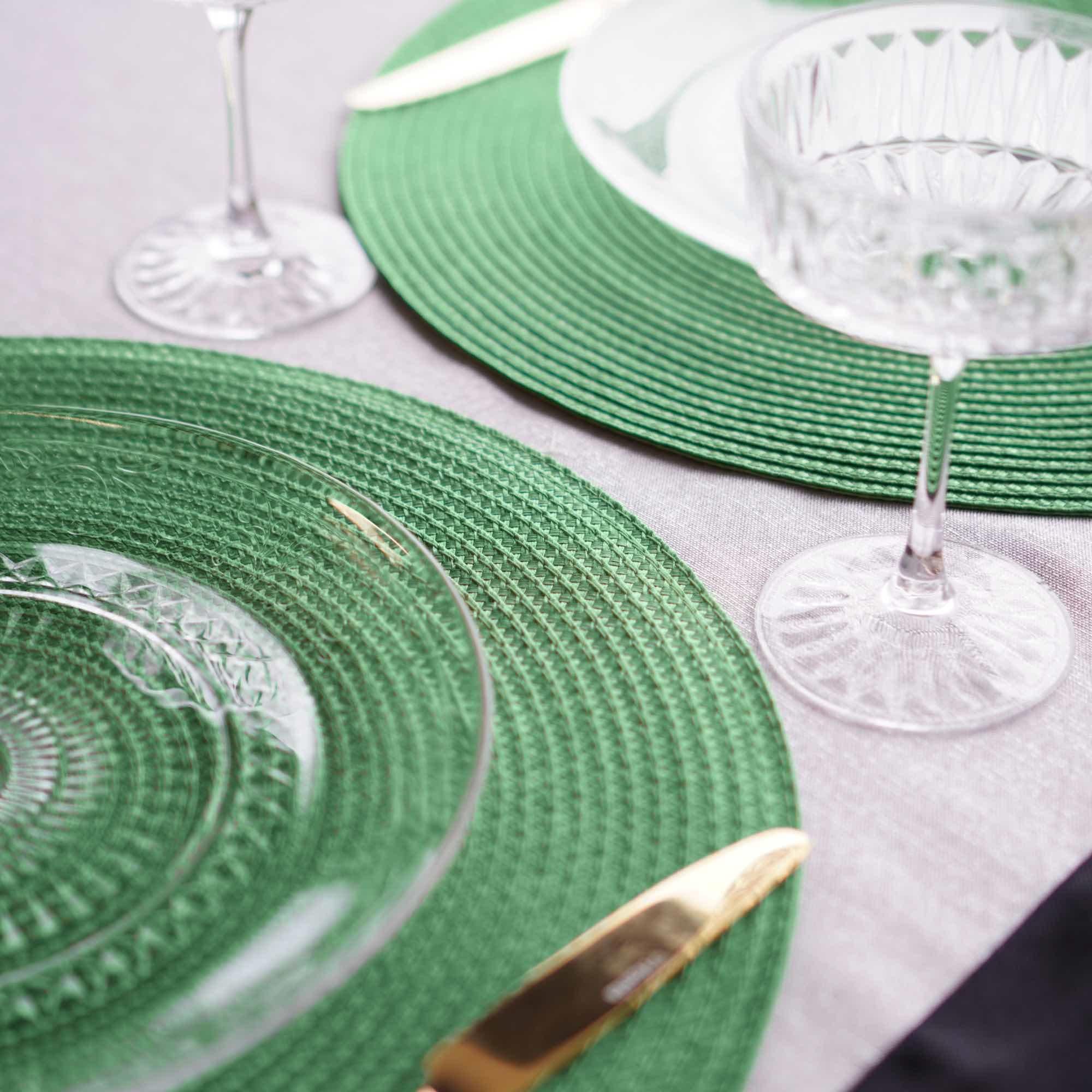 Podkładka na stół srednica 38 Chef pełni funkcję zarówno dekoracyjną jak i praktyczną chroniąc powierzchnię stołów. Jest bardzo estetyczna i elastyczna w dotyku. Nie tylko ochroni stół przed ewentualnym zabrudzeniem w czasie posiłku, ale również w gustowny sposób go udekoruje. Mata idealnie wpasuje się w każde wnętrze - zarówno klasyczne, jak i nowoczesne. Maty można używać nie tylko na co dzień, ale również bardziej okazjonalnie. W czasie świąt, uroczystych obiadów i domowych przyjęć mata będzie prezentowała się bardzo elegancko na obrusie. Dzięki swojej klasycznej linii bez wątpienia wpasuje się do każdego wnętrza. Podkładka pod talerze jest bardzo praktyczna - nie przywiera do niej brud, jest antypoślizgowa oraz całkowicie wodoodporna - bardzo łatwo utrzymać ją w czystości. Idealny pomysł na prezent. Rozmiar: średnica 38 cm Materiał: 100% tworzywo sztuczne Przepis konserwacji: w momencie przybrudzenia należy je czyścić mokrą szmatką bez użycia detergentów.