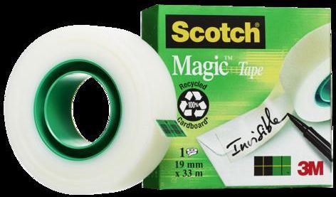 Matowe taśmy samoprzylepne Scotch. Można po nich pisać, niewidoczne na fotokopiach, łatwo się odklejają, nie żółkną z czasem. Idealne do: naprawy zniszczonych pism, map, zaklejania kopert, łączenia wydruków, przyklejania etykiet na dokumentach, segregatorach i wielu innych zastosowań. Cechy: - różne wymiary - nie zostawiają smug na fotokopiach - nie elektryzują się przy rozwijaniu z rolki