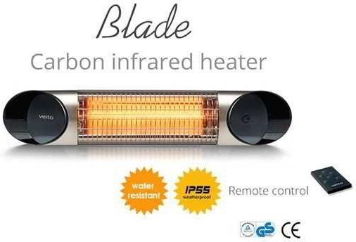 Ergonomiczny, wodoodpornyPromiennik ciepła na podczerwień Blade mini 1200W (IP55) Niewielkie wymiary, nowoczesny wygląd, zdalnie sterowany! Do ogrzewania wewnątrz i na zewnątrz małych powierzchni i pomieszczeń. MADE IN EUROPE Najmniejszy z serii Veito Blade promiennik ciepła o mocy 1200W jest doskonały do dogrzania mniejszych powierzchni. Nie zajmuje dużo miejsca dzięki czemu, znajduje często zastosowanie jako promiennik do dogrzewania łazienki, ponieważ jest również wodoodporny. W pokoju dziecięcym może się przydać w chłodne dni do przewijania niemowląt. A kiedy już dziecko urośnie ten promiennik dla niemowląt można śmiało wykorzystać do ogrzewania balkonu czy tarasu, ponieważ też doskonale nadaje się do ogrzewania zewnętrznego. Popularny jest również w zastosowaniach komercyjnych, np.: do ogrzewania restauracji, a konkretnie ogródków restauracyjnych. Dzięki niewielkim wymiarom może być wykorzystany do budowy parasola grzewczego. Dzięki opcjonalnym uchwytom montażowym, umożliwia łatwy montaż na ramieniu parasola jak i do markizy. Promiennik jest bardzo wygodny w obsłudze i komfortowy w użyciu, dzięki zdalnemu sterowaniu na pilota i 4-stopniowej regulacji mocy 600W-800W-1000W-1200W. Ogrzewacz emituje ukierunkowane i przyjemne ciepło w postaci bezpiecznych średnich fal podczerwieni. Dostępne są również modele o mocy 2000W i 2500W.Zastosowana technologia włókna węglowego o żywotności aż 10 lat, zapewania ogrzewanie otoczenia niezwykle wydajnie. Emitowane podczas ogrzewania świało nie jest rażące, często stanowi dodatkowy klimat w miejscach takich jak ogródki restauracyjne. Promiennik ciepła Veito Blade mini 1200 nadaje się do ogrzewania powierzchni do 5 m2 na zewnątrz i do 15m2 wewnątrz pomieszczeń.Promiennik osiąga pełną moc grzania natychmiast po włączeniu w ok. 3s. Ogrzewa bezpośrednio osoby i przedmioty znajdujące się w jego zasięgu. Nie trzeba czekać na nagrzanie się urządzenia, tym samym na ogrzanie powietrza w pomieszczeniu. Dzięki temu zużywa mniej energii. Na obudowie znajduje się dotykowy przełącznik, dzięki któremu można promiennik uruchomić i wyłączyć bez pilota oraz zmienić poziom emitowanego ciepła. Model Veito Blade posiada klasę odporności IP55. Jest więc wyjątkowo odporny na niekorzystne warunki pogodowe takiej jak deszcz, śnieg i wiatr. Promiennik ciepła może być instalowany na zewnątrz lub w pomieszczeniach narażonych na wilgoć, takich jak łazienka. Na wyposażeniu grzejnika są uchwyty do montażu na ścianie lub na suficie. W naszym asortymencie znajdą Państwo również specjalny statyw dla tego modelu, przez co może pełnić funkcje przenośnego ogrzewacza. Obudowa promiennika wraz z siatką ochroną wykonane zostały z wysokiej jakości stali nierdzewnej. Promienniki podczerwieni Veito Blade i piloty działają na tej samej częstotliwości, dzięki temu możliwe jest kontrolowanie kilku ogrzewaczy za pomocą jednego pilota. Cechy najważniejsze Promiennika ciepła na podczerwień Veito Blade mini Ergonomiczny kształ, kompaktowa obudowa Ekonomiczny w eksploatacji, bezwonny i bezgłośny Bezpieczny w użytkowaniu, ochrona przed dziećmi i zwierzętami Generuje przyjemne ciepło odczuwalne jak ciepło ze słońca Zapobiega tworzeniu się pleśni, grzybów i zbieraniu wilgoci Nie wytwarza spalin, nie powoduje zużycia tlenu, nie ma potrzeby wentylacji Prosta instalacja i obsługa, nie wymaga specjalnej wiedzy, umiejętności lub szkolenia Wymaga jedynie minimalnej konserwacji Natychmiastowe ogrzewanie w 2s Obudowa ze stali nierdzewnej Wodoodporny i pyłoodporny (stopień ochrony IP55) Pilot zdalnego sterowania na wyposażeniu Stopniowa regulacja mocy Zabezpieczenie przed przegrzaniem Do wybyboru w kolorze czarnym lub srebrno-czarnym Parametry techniczne Zasilanie: 230V 50Hz 4 stopniowa regulacja mocy: 600/800/1000/1200W Wymiary (SxWxG) w cm: 70 x 13 x 9 Waga: 1,6 kg Zabezpieczenie przed przegrzaniem Sterowanie: pilot zdalnego sterowania Przybliżony kąt promieniowania: 100 ° Długość przewodu zasilającego: 1,8m Sposób montażu: pion lub poziom, ściana lub sufit Temperatura elementu grzejnego: 1100 ° Grzałka żywotność: do 10 000 h Certyfikaty: CE, TUV / GS Pudełko zawiera 1 x promiennik Blade 1 x wsporniki ścienne i śruby 1 x Pilot zdalnego sterowania z baterią 1 x instrukcja w j. polskim