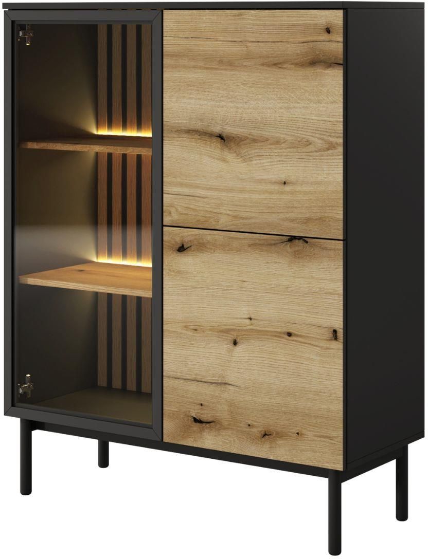 Niska witryna Lang to elegancka propozycja do salonu lub jadalni, łącząca nowoczesny design z funkcjonalnością i wysoką jakością wykonania.Korpus w kolorze głębokiej czerni kontrastuje z ciepłym dekorem drewna dębowego evoke, tworząc ponadczasową i wyrazistą całość.Górna część witryny została …