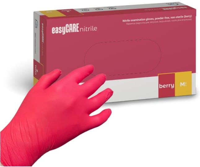 Rękawiczki nitrylowe, bezpudrowe, w malinowym, ciemnoróżowym kolorze polskiej marki Zarys. Seria MediCARE. Opakowanie zbiorcze 100 szt. Są to najmocniejsze i najgrubsze rękawiczki nitrylowe, które posiadamy w swojej ofercie. Rękawiczki są idealne dla osób, które nie mogą stosować rękawic lateksowych z powodu alergii. Pasują na lewą i prawą rękę. Zapewniają