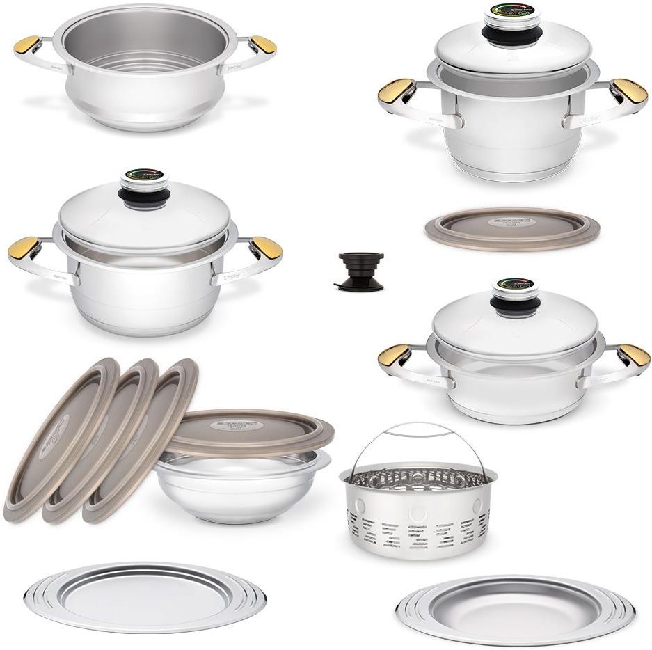 Zestaw Naczyń Zepter Zestaw naczyń Z-Line Business PLUS, 20 elementów / Indukcyjne + Prezent Skład zestawu Z-2042 - Naczynie 4,2 L 20 cm szt. 1 Z-2050 - Naczynie 5,0 L 20 cm szt. 1 Z-2430 - Naczynie URA 3,0 L 24 cm szt. 1 Z-CB20 - Miska kombi 2,0 L 20 cm szt.1 Z-S20 - Sitko/durszlak 2,8 L 20 cm szt. 1 Z-3AC - Tarka + pierścień + Chwytak kpl. 1 Z-CBL20 - pokrywka plastikowa miski 20 cm (kolor grafit) szt. 3 Z-CBL24 - pokrywka plastikowa miski 24 cm (kolor grafit) szt. 1 Z-SB24D - półmisek do serwowania 1,8 L 24 cm, głęboki szt. 1 Książka kucharska z przepisami szt. 1 Cleansy Zep Top szt. 1 Prezenty do wyboru (uzgadniany telefonicznie 504 480 626 ) Certyfikat naczyń Karta gwarancyjna Faktura VAT Garnki pasują do wszystkich źródeł ciepła: płyty indukcyjnej, płyty gazowe, płyty elektrycznej, inne. DOSKONAŁY ZESTAW DO ZASPOKOJENIA WSZELKICH KUCHENNYCH POTRZEB Ważną cechą zestawu naczyń Standard Masterpiece jest najwyższej jakości, niezawierający toksyn metal 316L i rewolucyjny system gotowania ‘non-stick’ gwarantujący jedzenie zdrowsze i smaczniejsze, zawierające mniejszą ilość kalorii. Wielopoziomowe gotowanie oszczędza energię, czas i pieniądze, ponieważ możliwe jest jednoczesne gotowanie 3-4 posiłków na jednej płycie grzewczej. Do zestawu włączyliśmy także koszyk do gotowania na parze, używany do gotowania produktów, które wymagają dodatkowej troski podczas przygotowania. Użyj koszyka do gotowania na parze, żeby zwiększyć odległość jedzenia od gorącego dna garnka, np. podczas przyrządzania szpinaku, delikatnego fileta ryby czy klusek. Ten proces zachowa naturalne witaminy i białka. W zestawie znajduje się wiele innych zadziwiająco praktycznych elementów, jak wielofunkcyjne pokrywy, które można też wykorzystać do mycia warzyw, przygotowania składników do gotowania, czy jako podstawkę pod gorące naczynie, uniwersalna miska do sałatek i innych potraw, a także do przechowywania żywności, znakomita tarka, na której bezpośrednio do garnka można ścierać warzywa lub ser, a można ją też wykorzystać jako następny poziom do gotowania w systemie piramidy. NIEZNISZCZALNY METAL I UNIKALNY SYSTEM GOTOWANIA = ZDROWE POSIŁKI Opatentowany, wiecznotrwały, ekologiczny, nietoksyczny, praktyczny i pięknie zaprojektowany. To są właściwości naszego rewolucyjnego systemu gotowania, który gwarantuje jedzenie zdrowe, o lepszym smaku i mniejszej ilości kalorii. Zestaw Junior zawiera uniwersalny garnek Masterpiece o pojemności 4,2 litra, 20 cm średnicy i wysokości 14,2 cm oraz 2-litrowy garnek casserole zaprojektowany z wykorzystaniem technologii ‘non-stick’ URA, która zmienia powierzchnię naczynia na poziomie molekularnym bez stosowania szkodliwych i toksycznych powłok. Do zestawu włączyliśmy także koszyk do gotowania na parze, używany do gotowania produktów, które wymagają dodatkowej troski podczas przygotowania. Użyj koszyka do gotowania na parze, żeby zwiększyć odległość jedzenia od gorącego dna garnka, np. podczas przyrządzania szpinaku, delikatnego fileta ryby czy klusek. Ten proces zachowa naturalne witaminy i białka. Zapewnienie pełnej kontroli nad procesem przygotowania jedzenia jest istotnym zadaniem dla naczyń Zepter Masterpiece, stąd nowe urządzenie cyfrowy termokontroler Zeptera, które umożliwia całkowicie zautomatyzowany proces gotowania od początku do końca. W zestawie znajduje się wiele innych zadziwiająco praktycznych elementów, jak wielofunkcyjne pokrywy, które można też wykorzystać do mycia warzyw, przygotowania składników do gotowania, czy jako podstawkę pod gorące naczynie, uniwersalna miska do sałatek i innych potraw, a także do przechowywania żywności, znakomita tarka, na której bezpośrednio do garnka można ścierać warzywa lub ser, a można ją też wykorzystać jako następny poziom do gotowania w systemie piramidy. MOŻLIWA OD ZARAZ - SZYBKA, ŁATWA, TANIA, SMACZNA, NISKOTŁUSZCZOWA, ZDROWA DIETA! 20 częściowy zestaw naczyń Masterpiece jest objęty co najmniej 30-letnią gwarancją. Niezawierająca toksyn, najwyższej jakości stal nierdzewna używana do produkcji naczyń Zeptera i rewolucyjny system gotowania zapewniają jedzenie smaczniejsze, zdrowsze i liczące mniej kalorii. Zestaw zawiera wspaniały 7-litrowy garnek, o średnicy 24 cm i wysokości 16,5 cm - doskonały do przygotowania dużych posiłków. W zestawie znajduje się też uniwersalne 3 litrowe naczynie casserole zaprojektowane z wykorzystaniem innowacyjnej zapobiegającej przywieraniu (‘non-stick’), wolnej od chemikaliów i toksyn, technologii URA, która powierzchnię metalowego dna zmienia na poziomie molekularnym. Do zestawu włączyliśmy także koszyk do gotowania na parze, używany do gotowania produktów, które wymagają dodatkowej troski podczas przygotowania. Użyj koszyka do gotowania na parze, żeby zwiększyć odległość jedzenia od gorącego dna garnka, np. podczas przyrządzania szpinaku, delikatnego fileta ryby czy klusek. Ten proces zachowa naturalne witaminy i białka. W zestawie znajduje się wiele innych zadziwiająco praktycznych elementów, jak wielofunkcyjne pokrywy, które można też wykorzystać do mycia warzyw, przygotowania składników do gotowania, czy jako podstawkę pod gorące naczynie, uniwersalna miska do sałatek i innych potraw, a także do przechowywania żywności, znakomita tarka, na której bezpośrednio do garnka można ścierać warzywa lub ser, a można ją też wykorzystać jako następny poziom do gotowania w systemie piramidy. DLACZEGO ZESTAWY MASTERPIECE TO NACZYNIA NUMER JEDEN? ZDROWE, WYGODNE, NAJBARDZIEJ WYDAJNE GOTOWANIE Dokonaj wyboru spośród całej gamy naczyń Zeptera o różnych rozmiarach do kolejnych kulinarnych osiągnięć. Rozmiar i pojemność 2-litrowego naczynia czyni go idealnym elementem w systemie wielopoziomowym do gotowania 2-3 potraw na jednym źródle ciepła. Dzięki technologii zamkniętego o