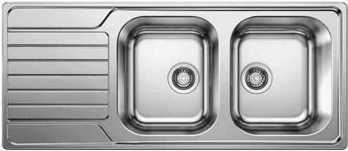DINAS 8 S Klasyczny model zlewozmywaka o ponadczasowym wyglądzie Obszerna komora Funkcjonalny ociekacz Zlewozmywak odwracalny Korek 3 ½" z sitkiem . Rysunek techniczny Centrum kuchenne ze stali szlachetnej - Klasyczne. Ponadczasowe. Piękne. Najwyższa jakość BLANCO stosuje wyłącznie stal szlachetną najwyższej jakości, która jest  selekcjonowana wg określonych kryteriów  i której jakość podlega ścisłej kontroli. Doświadczenie w zakresie obróbki stali  jest dopełnieniem wysokiej jakości. Higiena Powierzchnia stali szlachetnej BLANCO jest wyjątkowo gładka. Różnorodne możliwości zastosowania stali szlachetnej w przemyśle spożywczym podkreślają jej doskonałe właściwości higieniczne. Neutralność w kontakcie z żywnością Stal szlachetna nie wpływa na wygląd ani na smak produktów spożywczych.  Wytrzymałość Stal szlachetna jest wytrzymała, amortyzuje uderzenia. Naczynie, które wpadnie do komory stalowego zlewozmywaka nie rozbije się tak łatwo. Odporność Wysokiej jakości stal szlachetna BLANCO posiada naturalną odporność na kwasy stosowane w gospodarstwie domowym oraz na powstawanie plam, które mogą pojawić się podczas kontaktu z niektórymi produktami spożywczymi (np. kawą, herbatą, owocami i warzywami). Łatwość pielęgnacji Stal szlachetna BLANCO zachowuje swoją wartość i piękno przez dziesiątki lat, mimo iż nie potrzebuje zbyt wymagającej pielęgnacji. Zdolność do regeneracji Stal szlachetna ma zdolność do ciągłej regeneracji. Pod wpływem tlenu na powierzchni stali nierdzewnej tworzy się warstwa pasywna, która zapewnia odporność na korozję. Odporność na wysokie temperatury i światło Stal szlachetna jest odporna na wysokie temperatury do 300°C. Również długotrwały kontakt ze światłem słonecznym nie ma wpływu na kolor i strukturę materiału. Produkty polecane