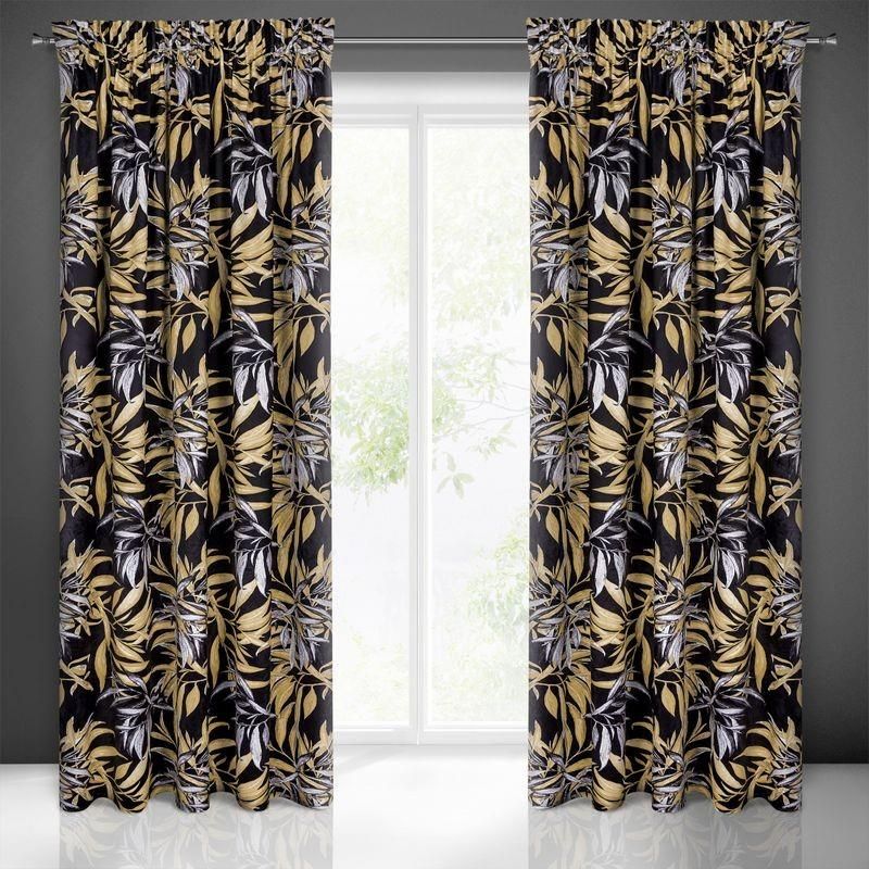 Czarna zasłona PIERRE CARDIN gałązki na żabki Aukcja dotyczy sprzedaży jednej sztuki Efektowna zasłona z miękkiego welwetu ozdobiona jest nadrukiem dwubarwnych gałązek, które pokrywają jej powierzchnię. Cieniowany nadruk wyróżnia się na kontrastującym czarnym tle. Zasłona z grubszej tkaniny ma …